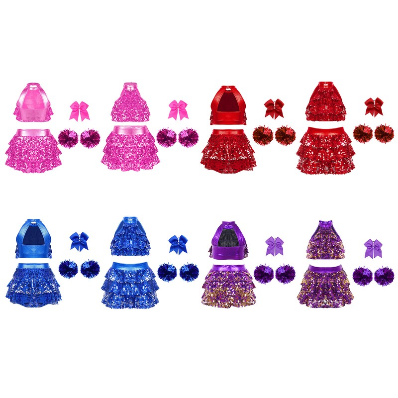 Matching with good elastic waistband culottes, bronzing cloth inside, shiny sequins tiered in outside, very fashionable and adorable.