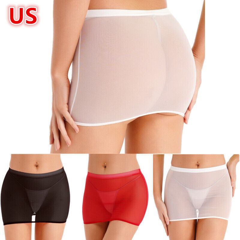 Women Flower Pattern See-through Lace Skirt Mid Waist Elastic Waistband Sheer Miniskirt Nightwear.