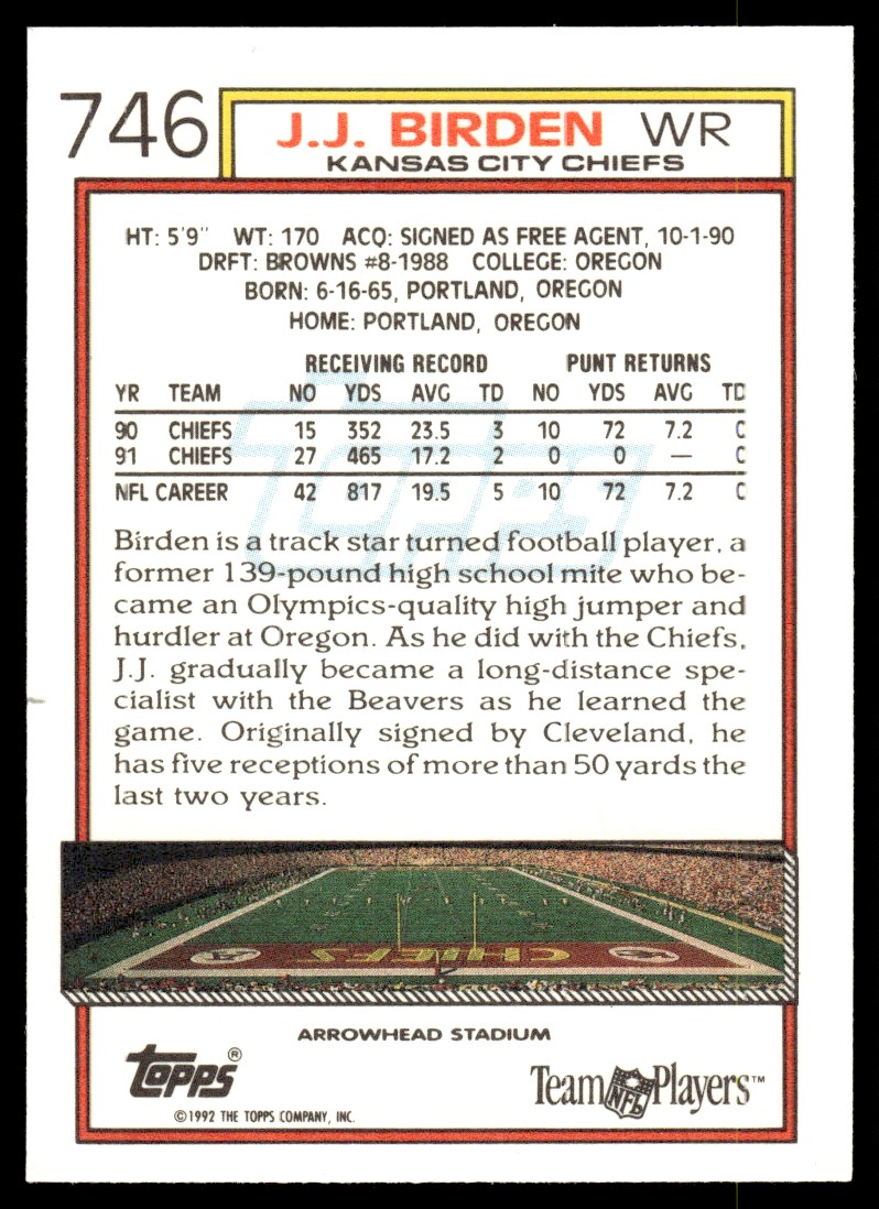 | 1992 Topps J.J. Birden Kansas City Chiefs #746 |