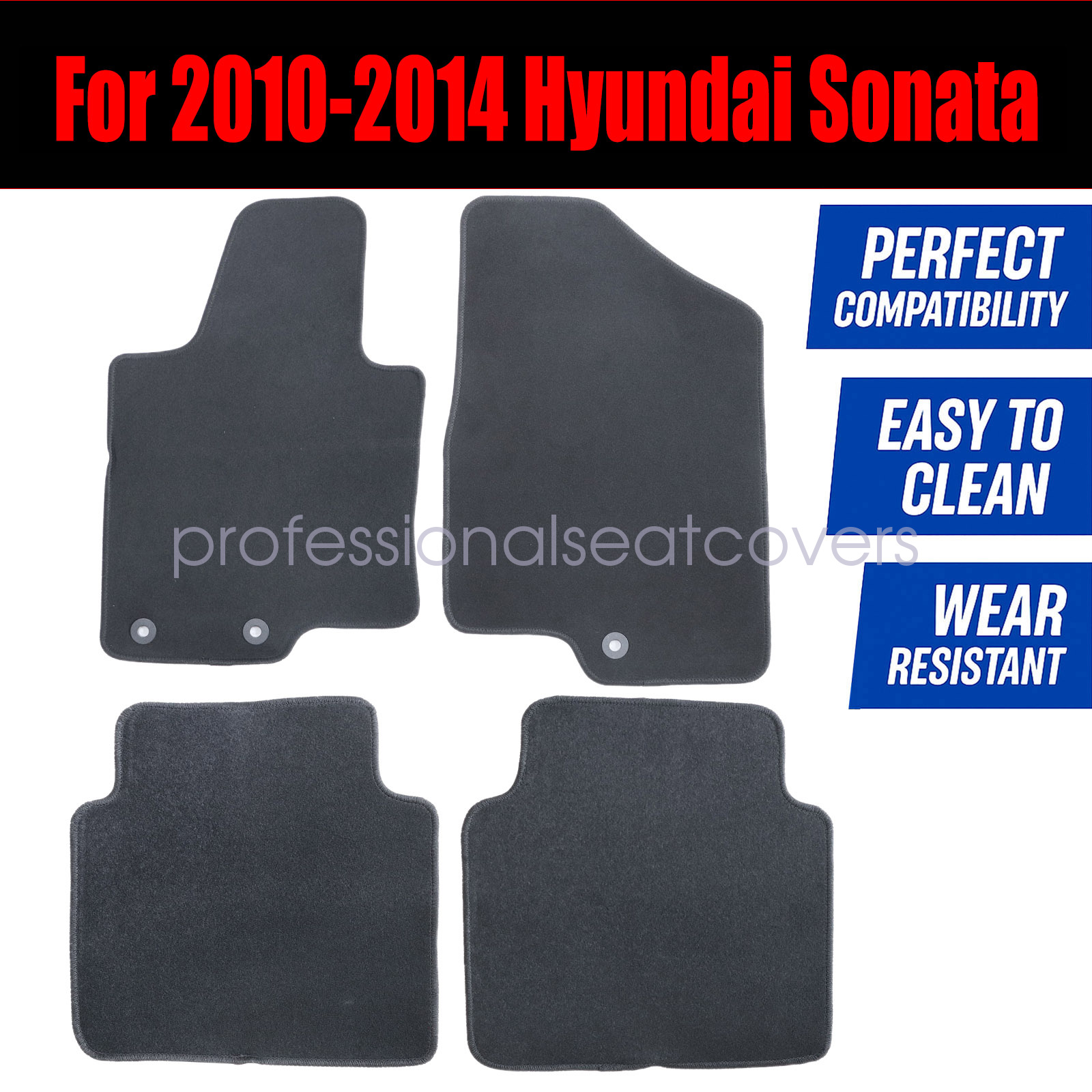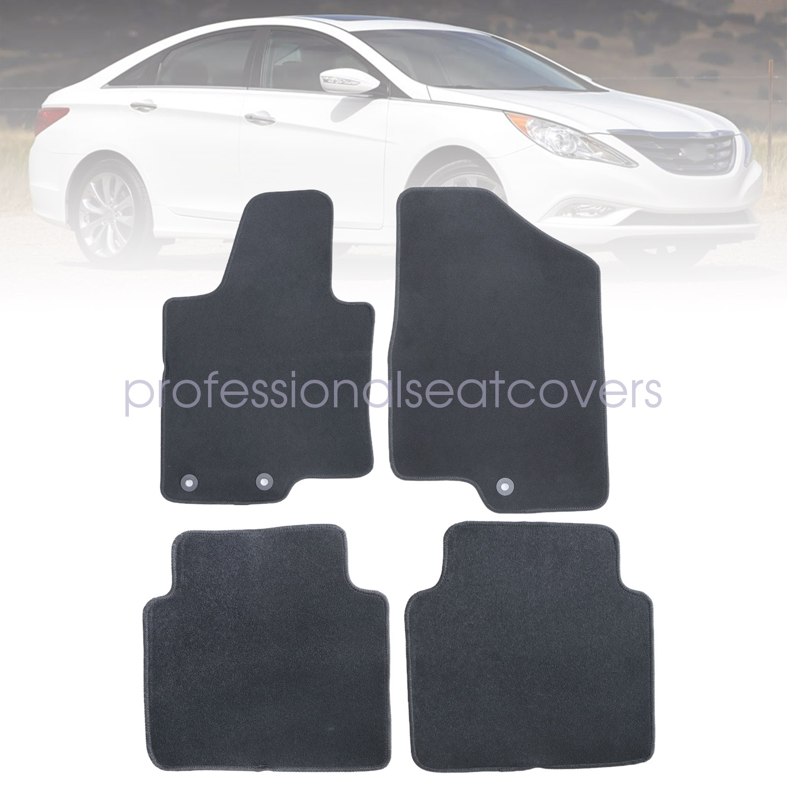 OEM Replacement Black Velour Front & Rear Floor Mats Carpet Fits 2010-2014 Hyundai Sonata
