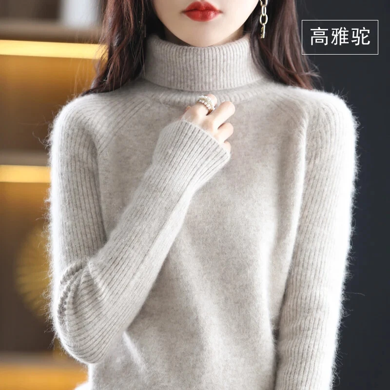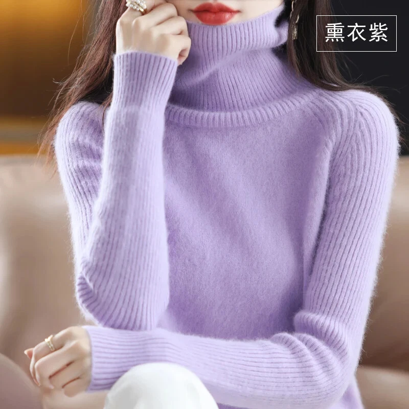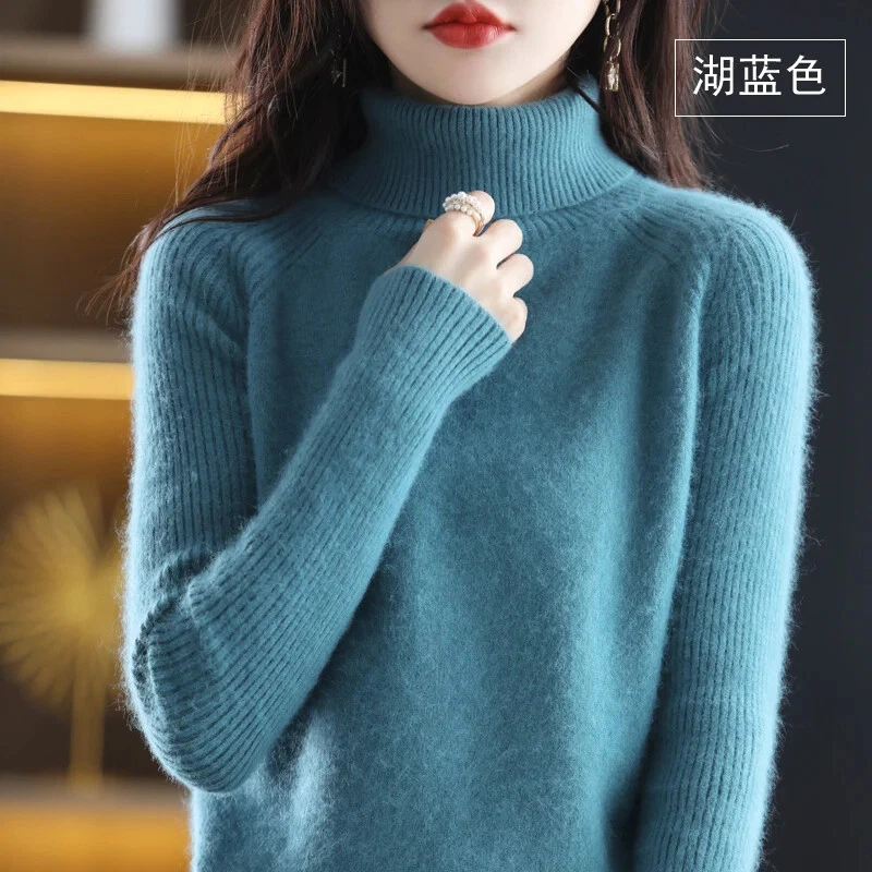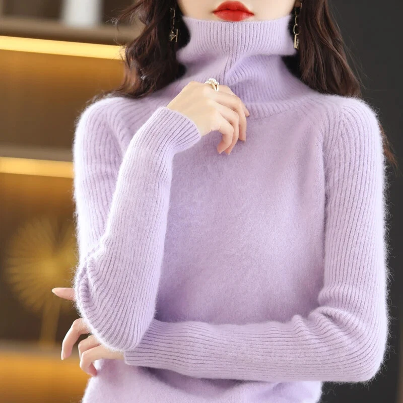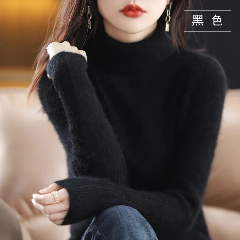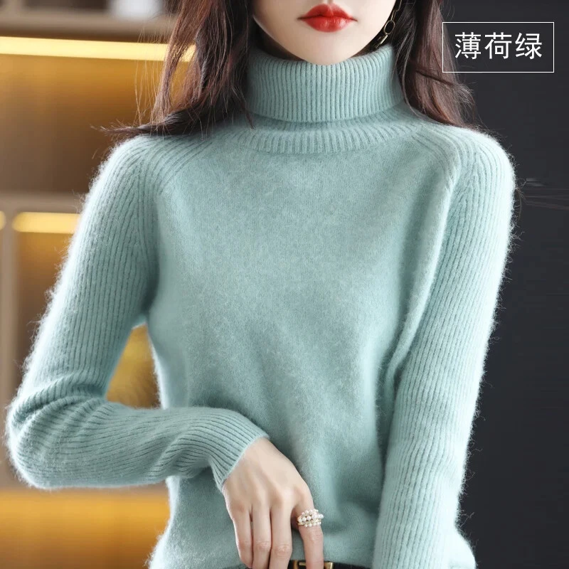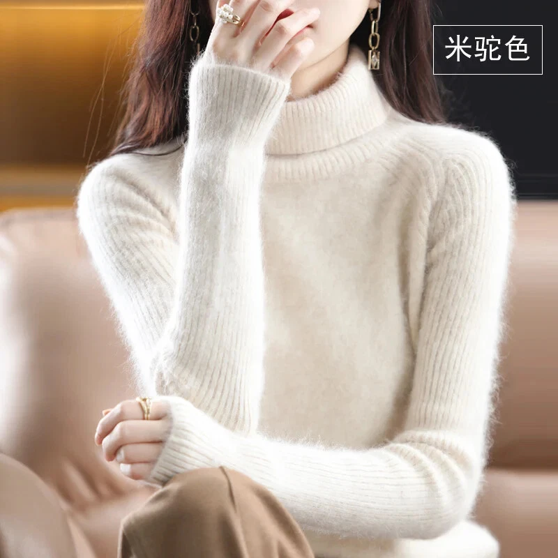 Autumn Winter Women's Sweater 100% Mink Cashmere High Neck Pullover Women's Top