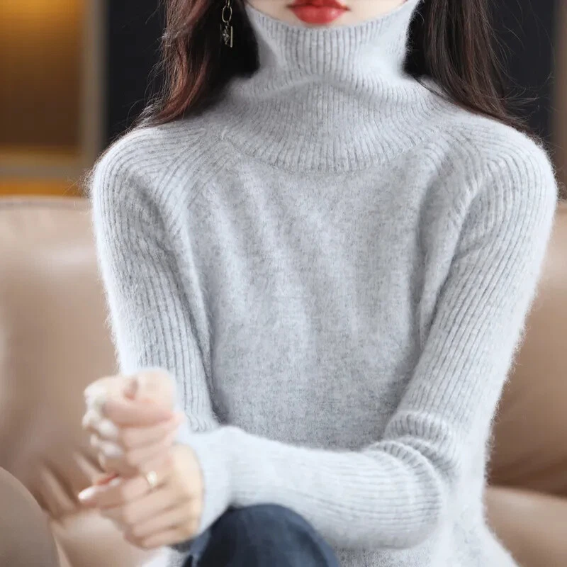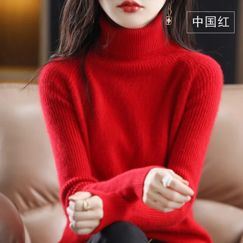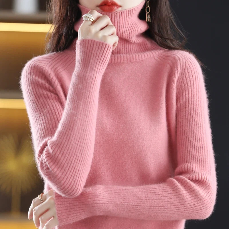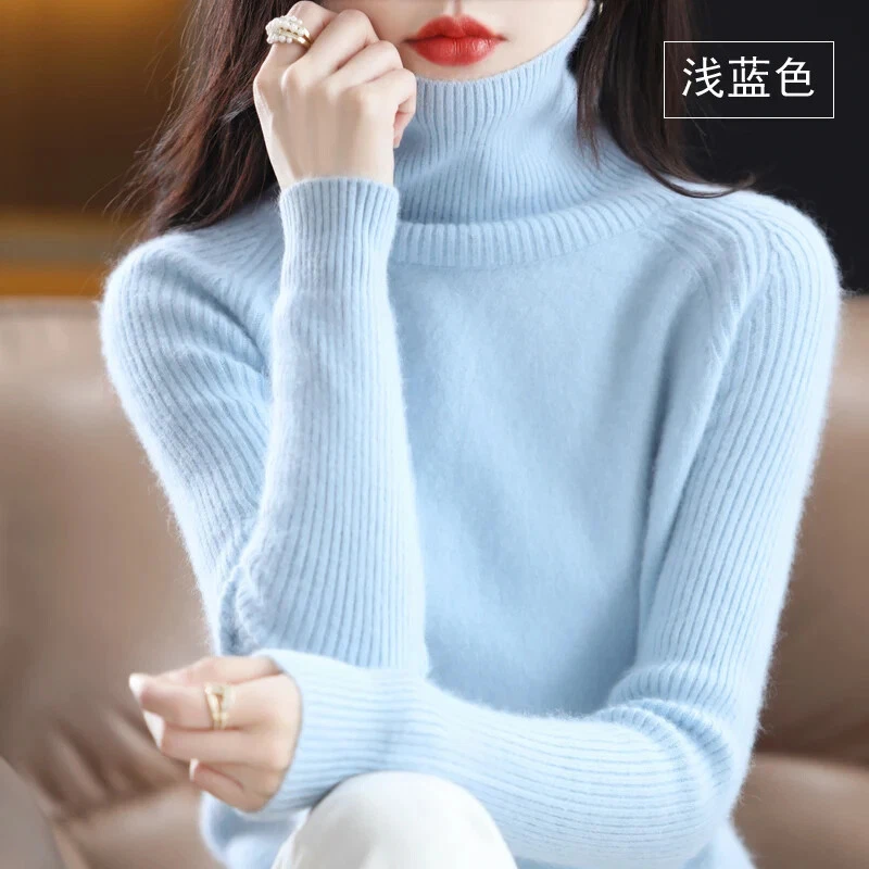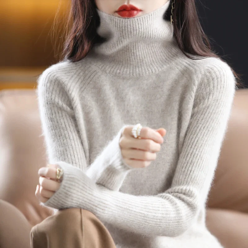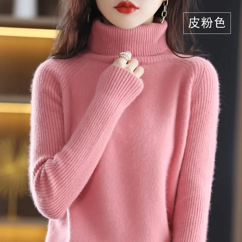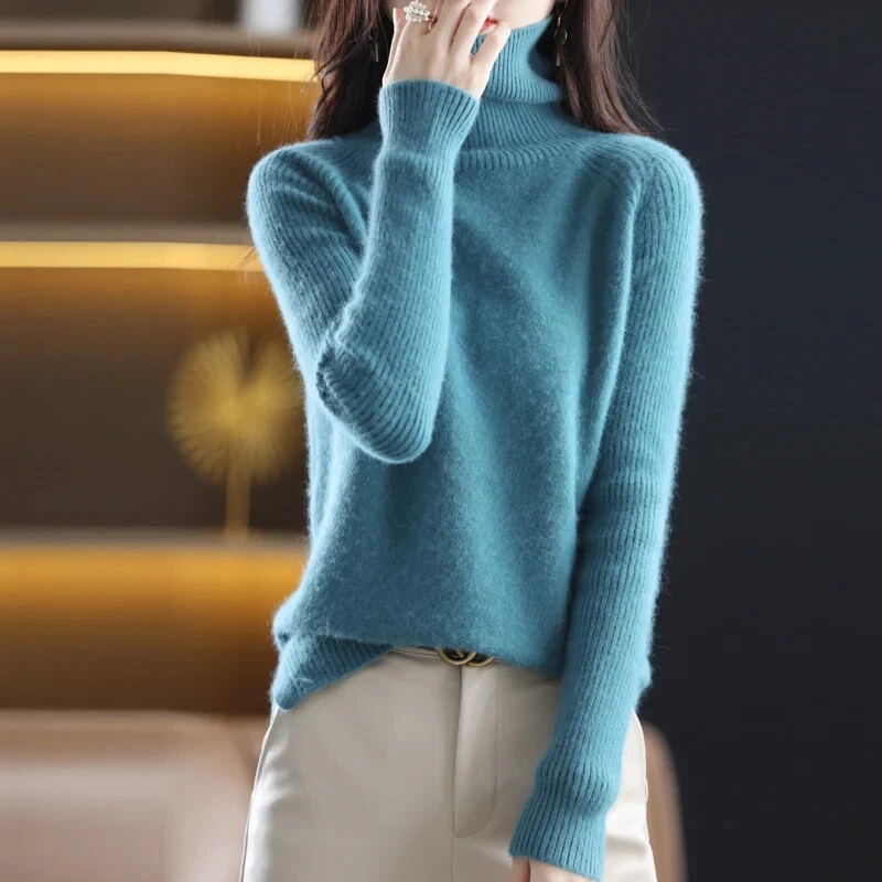 Autumn Winter Women's Sweater 100% Mink Cashmere High Neck Pullover Women's Top