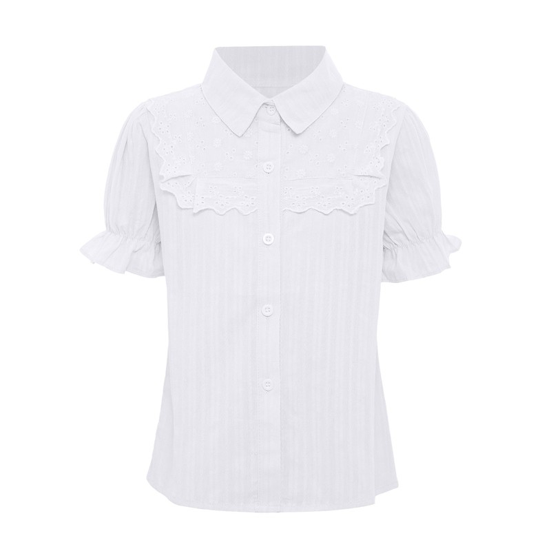 Das Design mit den kurzen Puffärmeln ist trendig und charmant und verleiht der Bluse einen Hauch von Niedlichkeit und Mode.