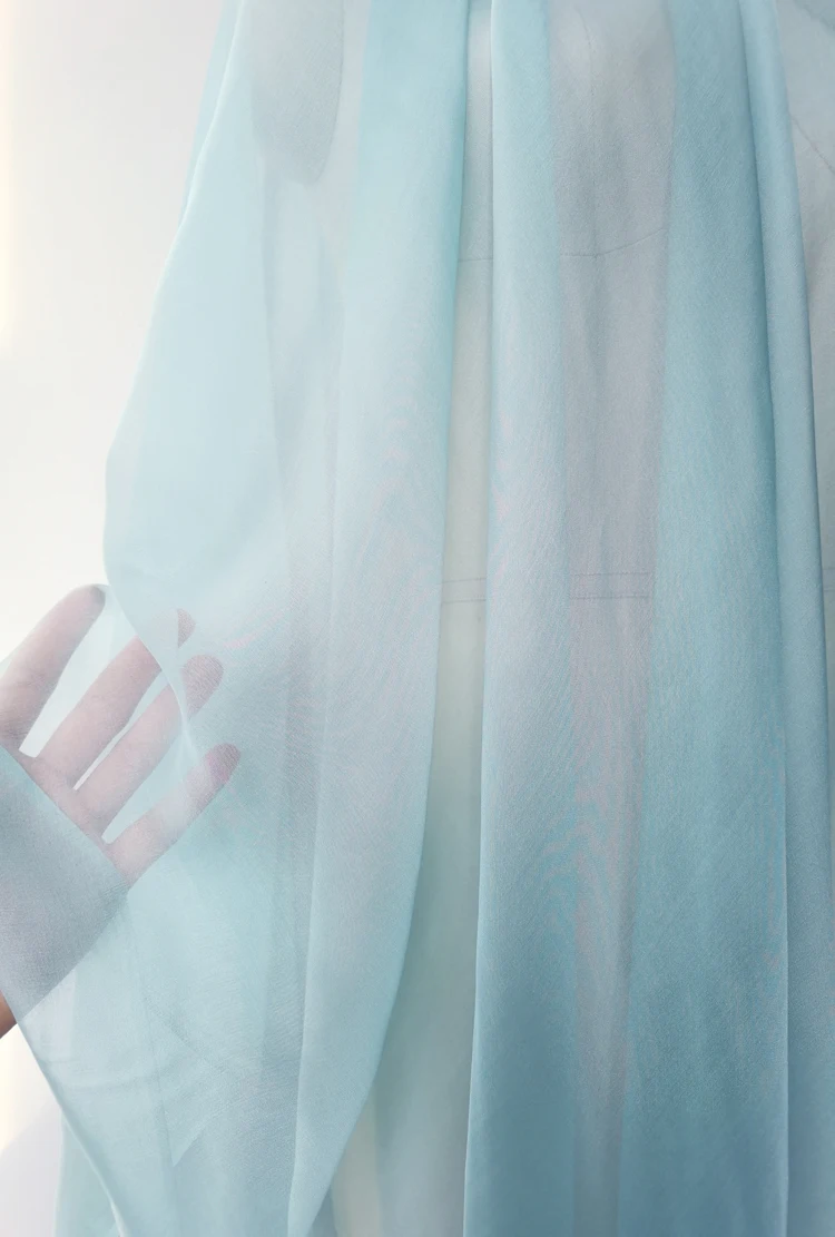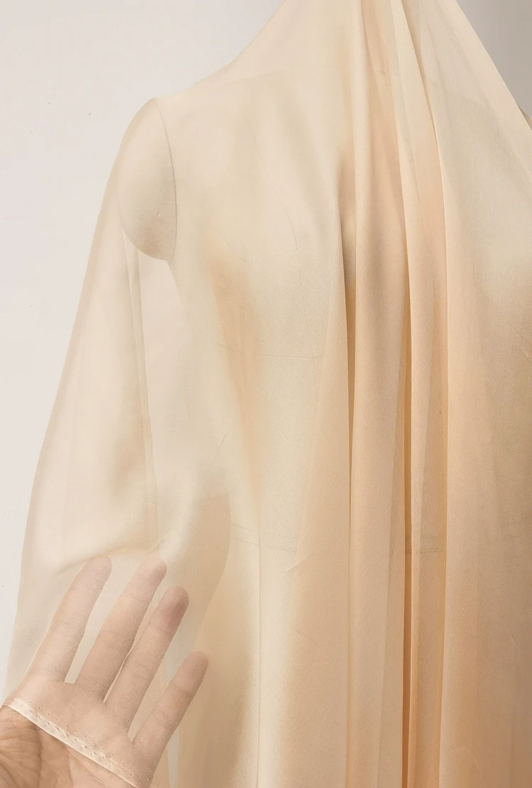 1)Material:100% Mulberry Silk Chiffon Gauze,55" Wide,Light Weight,Soft and Elegant Glossy on Front Side