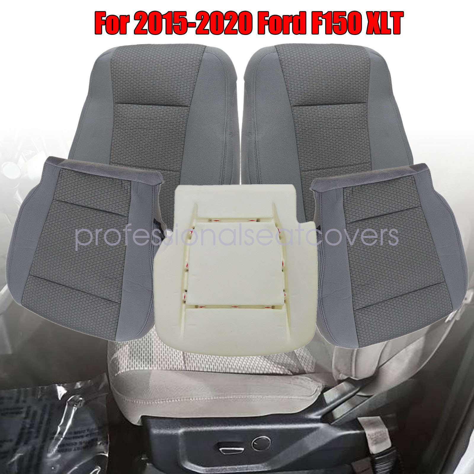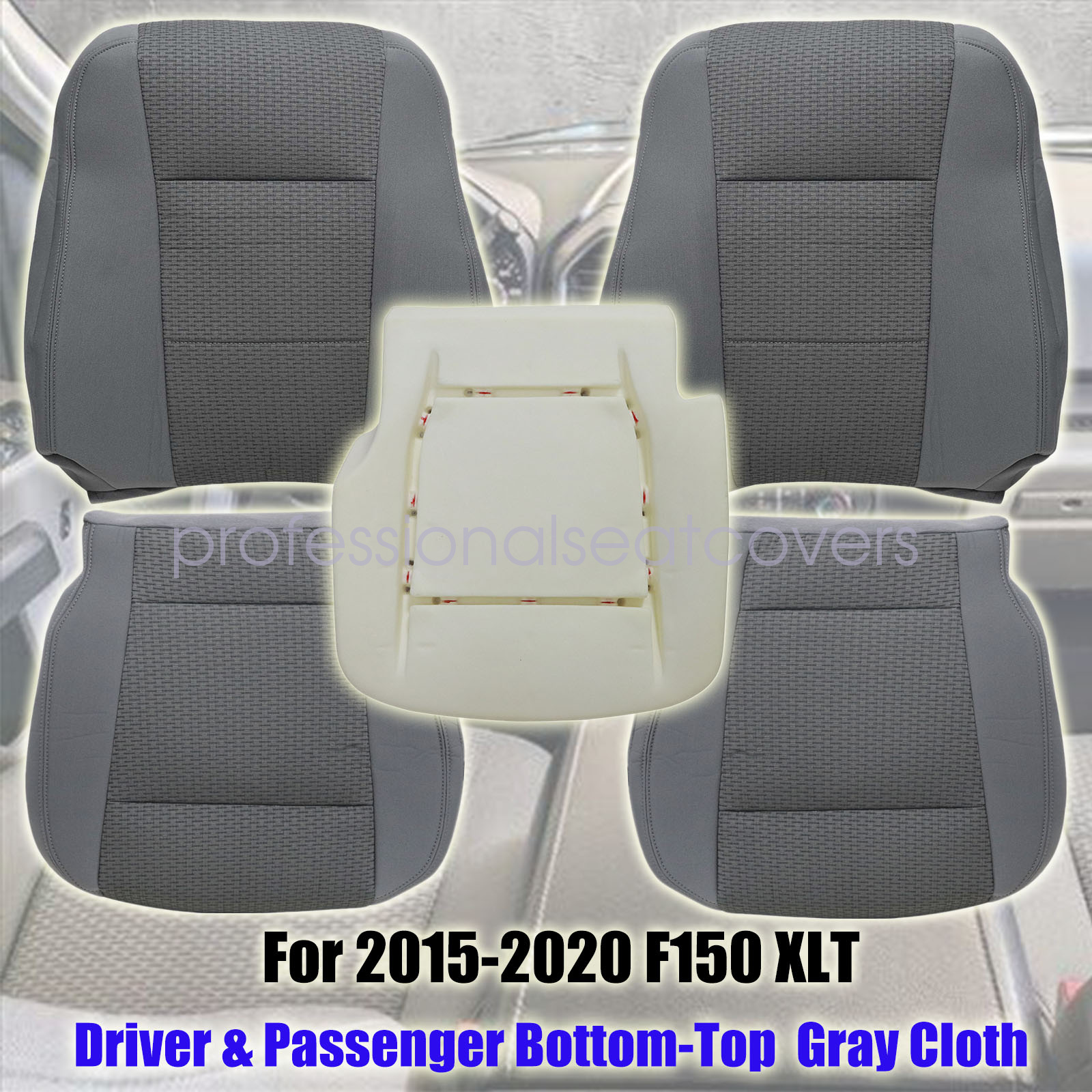 Replacement For 2015-2020 Ford F150 XLT Driver & Passenger Side Cloth Bottom-Top Seat Cover Gray & 1x Bottom Foam