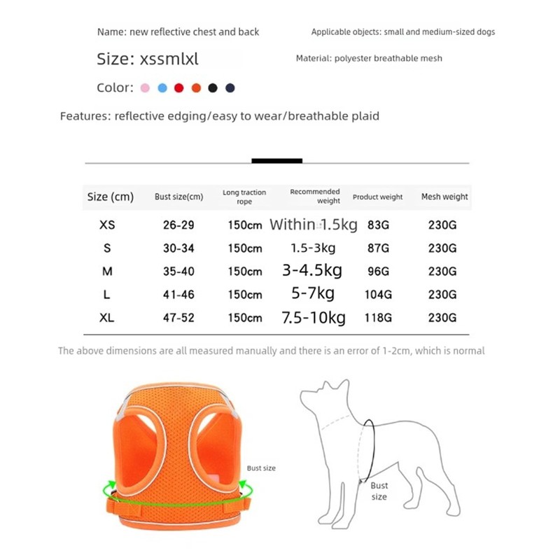 Set Include: 1Pc Dog Vest, 1Pc Leash