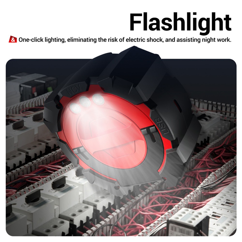 *Place the NCV sensing area close to the AC voltage, the meter will beep and alarm, the screen will display the signal is weak --- the L indicator light is green; the screen will display the signal is strong --- indicator light is red