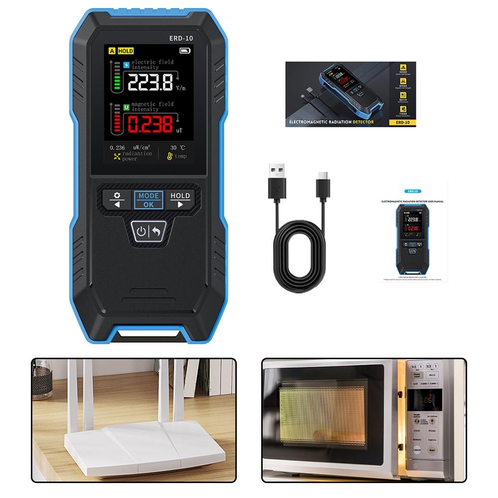 ERD-10 electromagnetic radiation detector is a professional electromagnetic radiation measurement instrument suitable for a variety of application scenarios such as home, office, car, outdoor, etc.