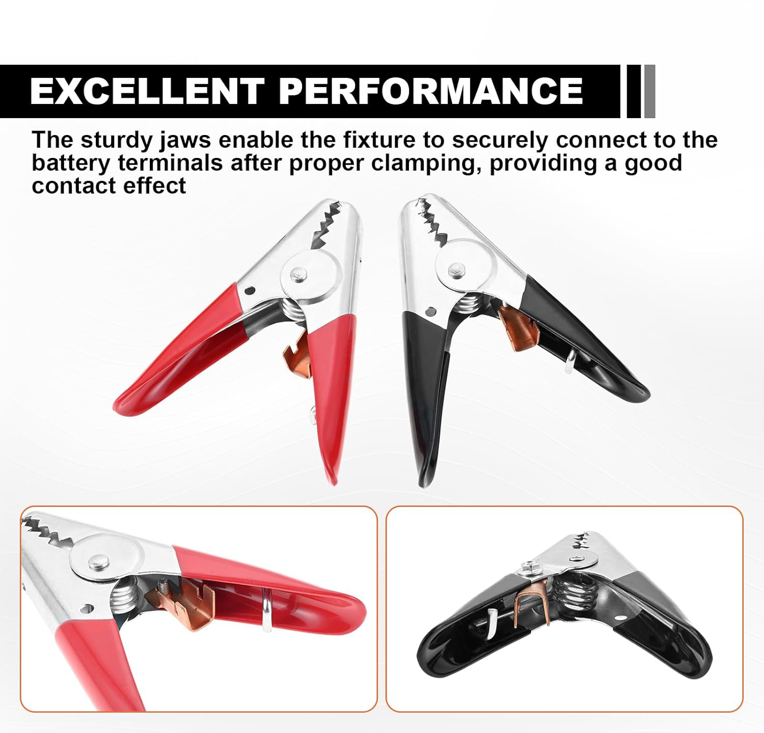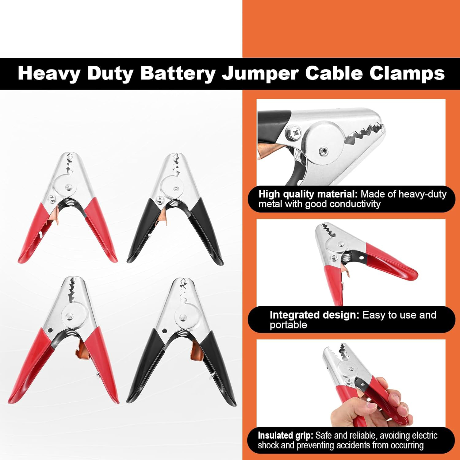 1.Material: The battery cable clamps are made of heavy duty metal iron, durable and reliable conductivity. And the handle is wrapped with insulating material, non-slip and wear-resistant, easy to grip.