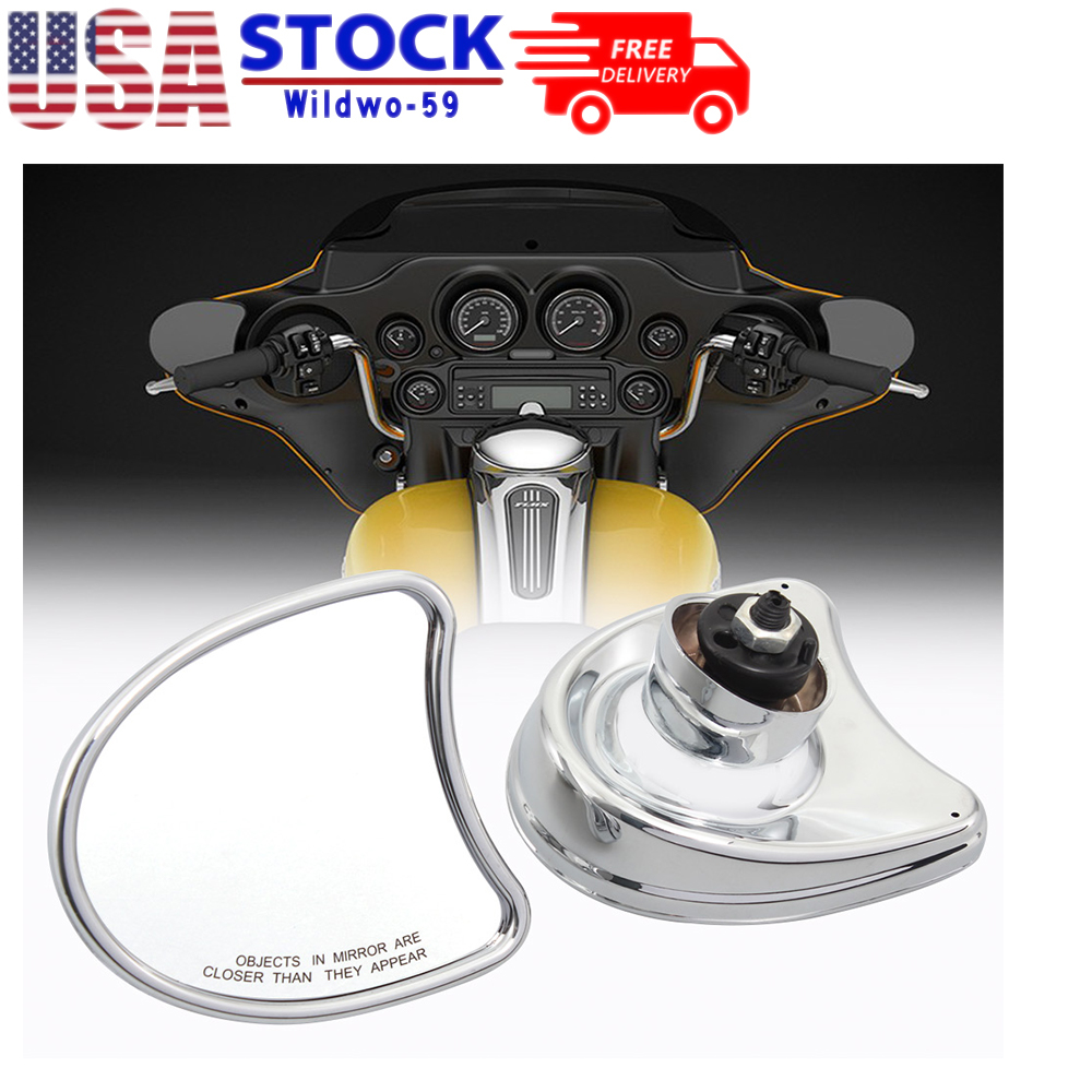 Features: It is Aftermarket Parts Used for Harley. brand new aftermarket product. High quality Chrome fairing mount side mirrors. Material: ABS plastic + glass lenses. Mirrors dimension:11 x 11.5cm / 4.3" x 4.5". Mirror Housing Color: Super cool chrome Glass Color: White Adjustable mirror angle, up and down, left and right. Provide a wide range of adjustability and feature convex mirror glass that maximizes your field of view. Easy installation. No instructions included. Packing:1 Set of Inner Fairing Mount Side Rear Mirrors. Fitment:It is Aftermarket Parts Used for Harley. For Touring Electra Glide, Ultra Limited and Tri Glide models '14-later Will fit for touring models as below: