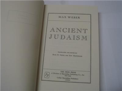 Weber’s classic study which deals specifically with: Types of Asceticism and the Significance of Ancient Judaism, History and Social Organization of Ancient Palestine, Political Organization and Religious Ideas in the Time of the Confederacy and the Early Kings, Political Decline, Religious Conflict and Biblical Prophecy