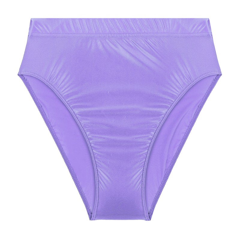 Womens Glossy Solid Color High Waist Briefs Underwear Swimsuit Bottom.