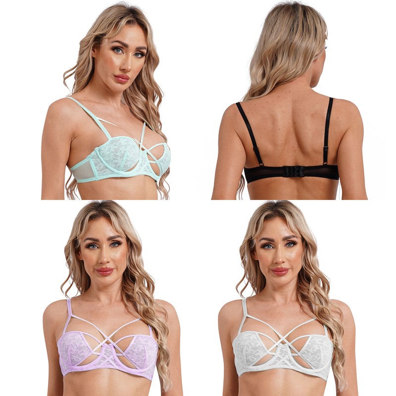 Womens Sheer Floral Lace Underwired Bra Underwear Unlined Brassiere.