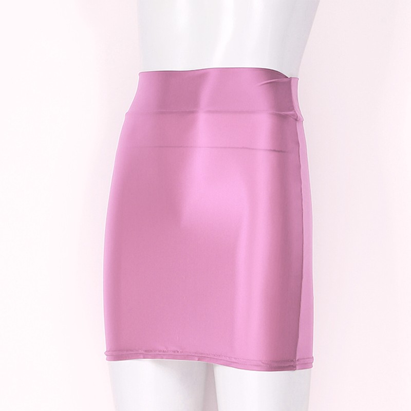 Womens Glossy Solid Color Pencil Skirt Casual High Waist Elastic Waistband Miniskirt.