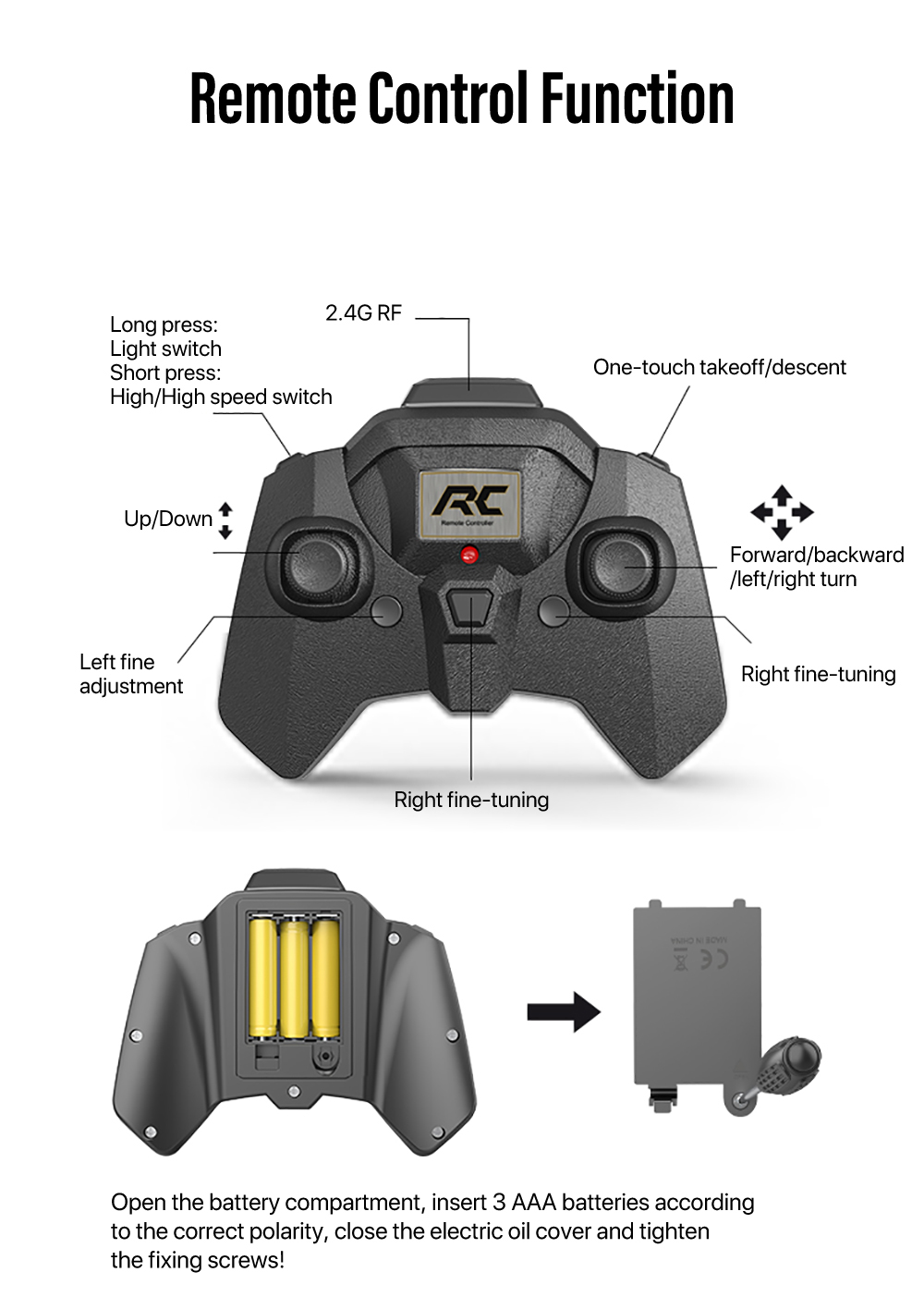 3. Intelligent air pressure height setting,Simulate the real flight experience, speed steering full range of intelligent control.