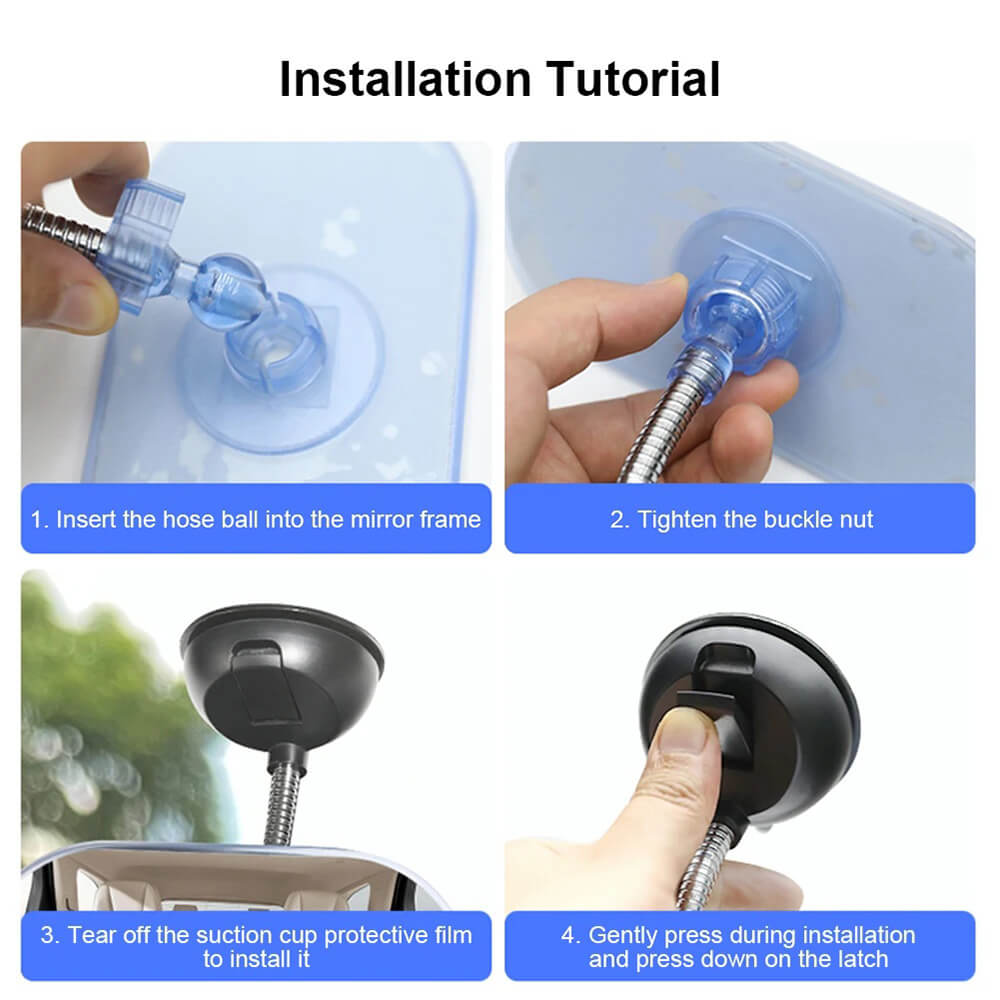 3. Flexible Adjustment: Equipped with a metal gooseneck support, the safety car back seat baby view mirror allows for easy angle adjustments. The flexible gooseneck can be bent to any shape, providing freedom to adjust the viewing angle as needed.