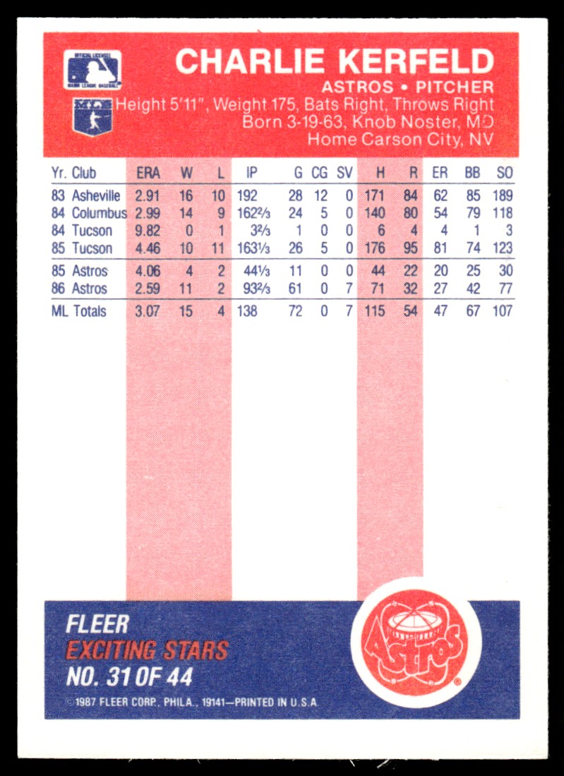| 1987 Fleer Exciting Stars Charlie Kerfeld Houston Astros #31 |