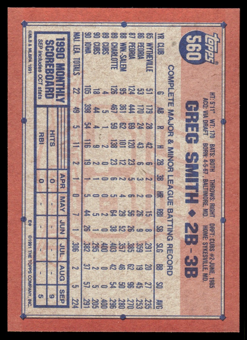 | 1991 Topps Greg Smith Chicago Cubs #560 |