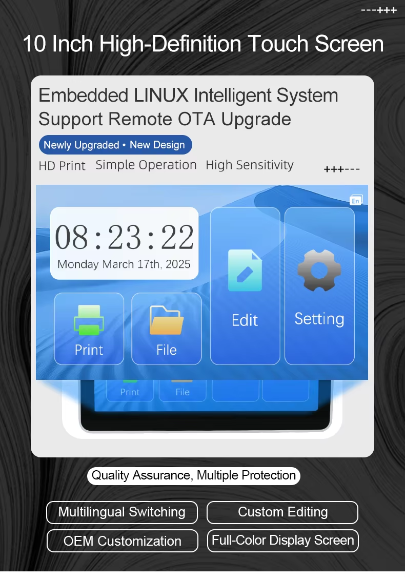 A:The machine can print on paper boxes, plastic, metal, glass, wood, cloth and other materials; Machines are available in height 1.27 cm, 2.54 cm, 5 cm, 10 cm or larger sizes