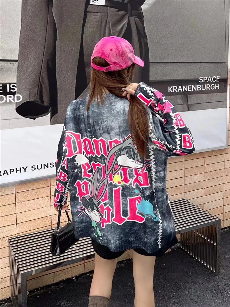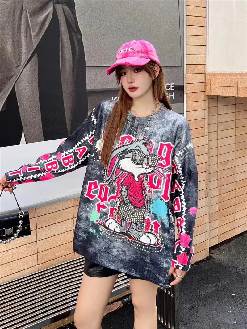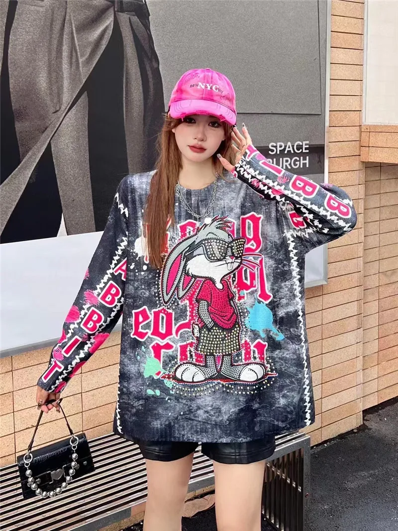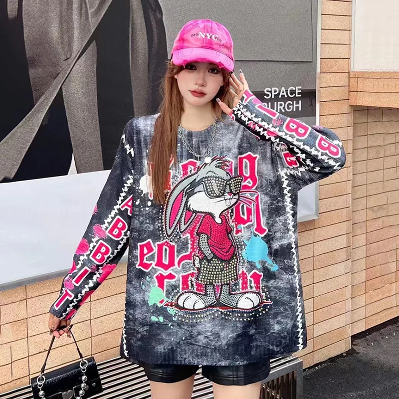 New Women Luxury Diamond Rabbit Rhinestones Fashion Knitted Sweater High Quality