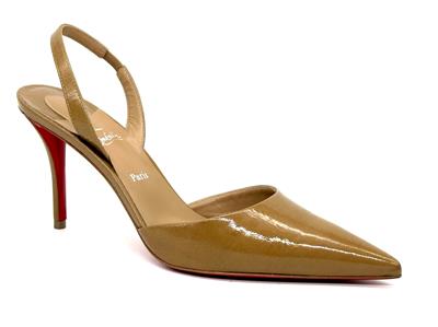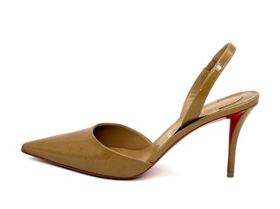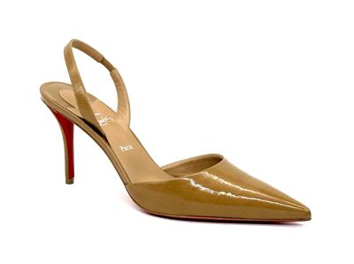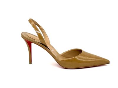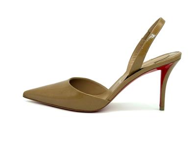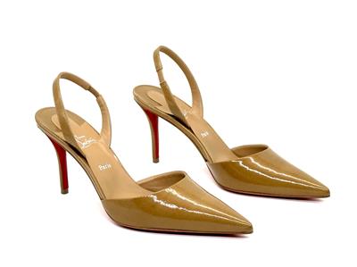 - Set on an 80 mm angled heel, the 'Apostropha' patent leather slingback pumps have a pointed toe with a daring low-cut vamp to elegantly reveal the foot.