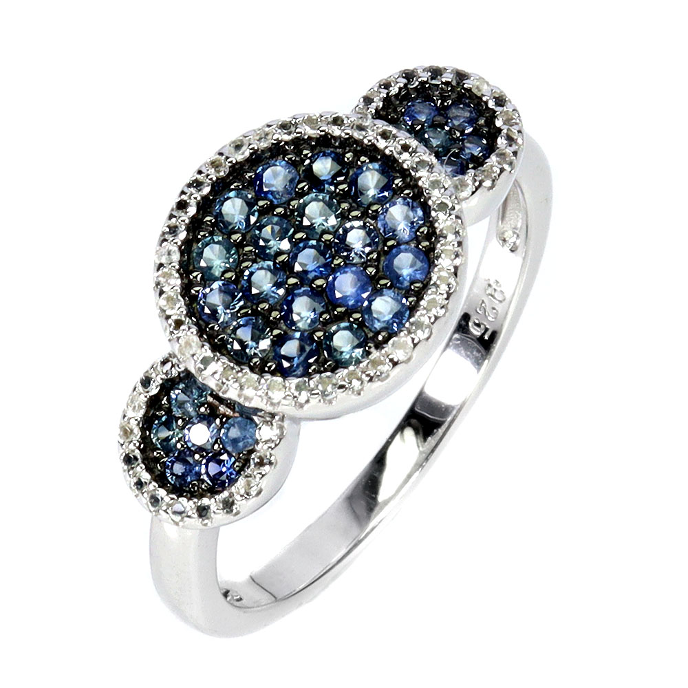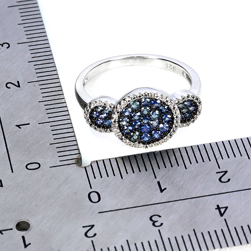 925 Sterling Silver Ring Blue Sapphire Round Diamond Cut Topaz Gemstone Sz 8.5