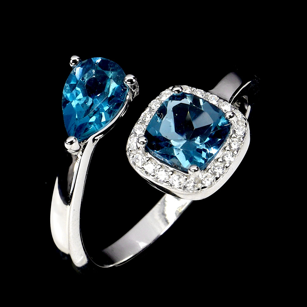 925 Sterling Silver Ring Pear London Blue Topaz 7x5mm Gemstone Jewelry Size 8