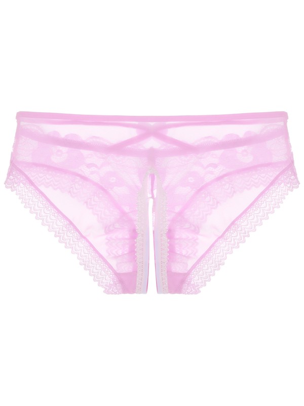 Mens See-Through Lace Briefs Bowknot Strappy Crotchless Underpants.