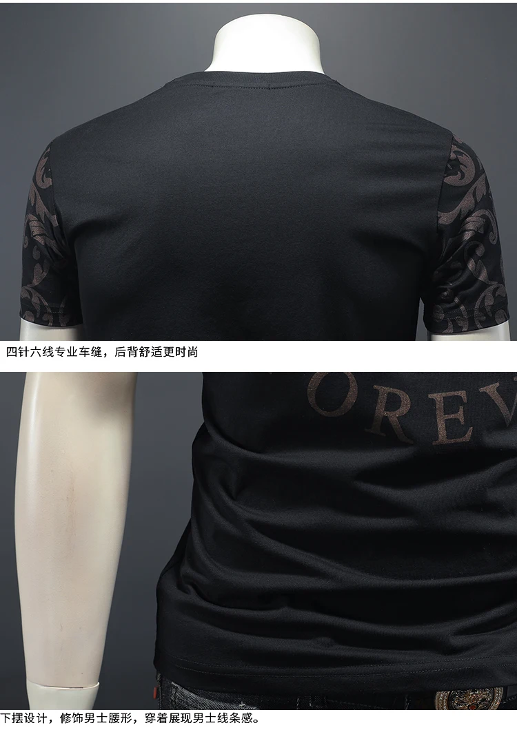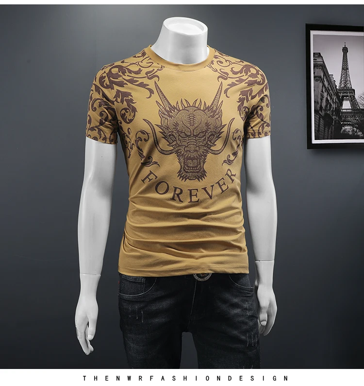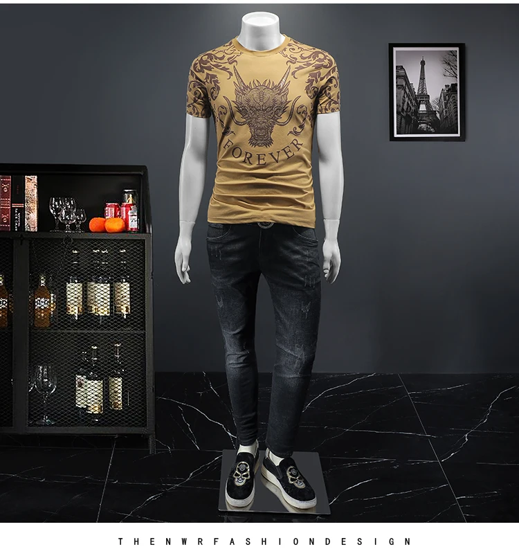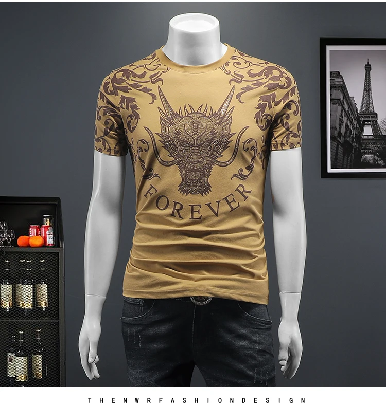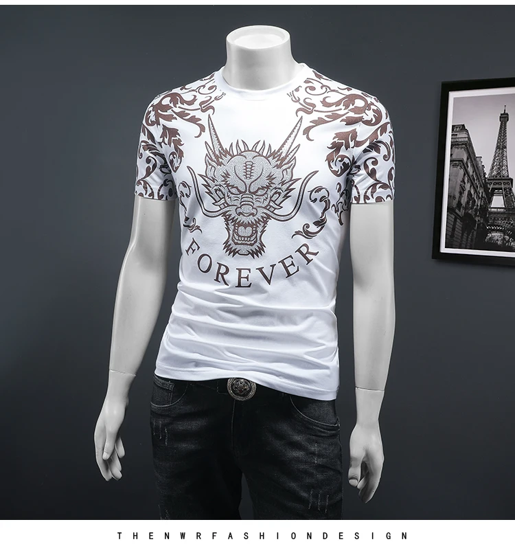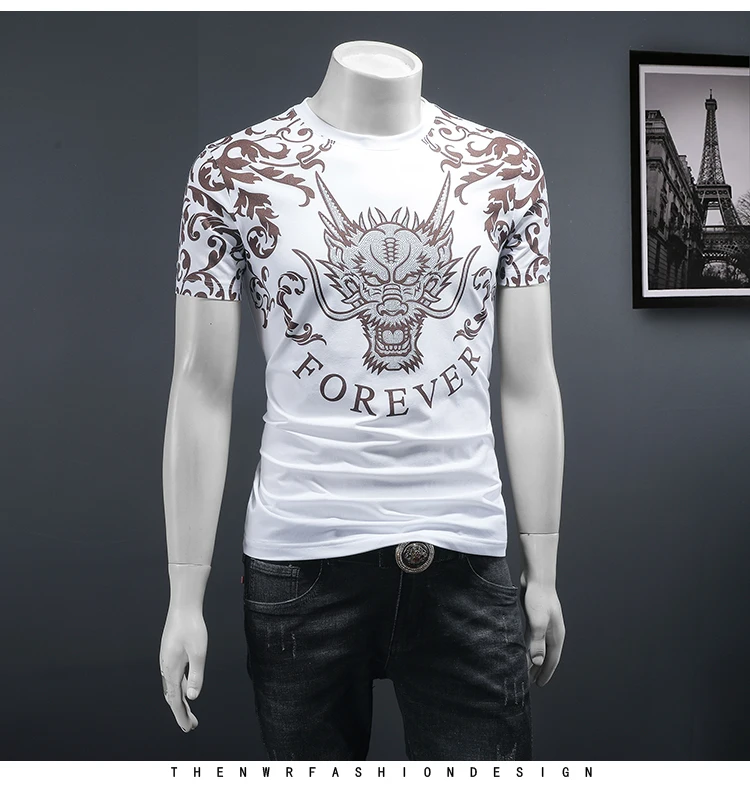 New Men Luxury Diamond Dragon Rhinestones Fashion T-Shirt High Quality