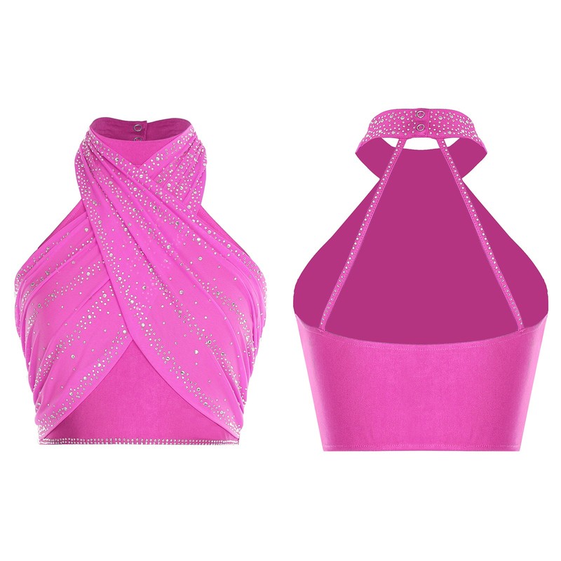 The shiny rhinestones add a glamorous and eye-catching element, perfect for the stage or a dance event.