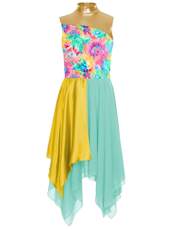 The irregular chiffon hem adds a touch of elegance and movement to the dress, creating a dynamic and stylish silhouette that catches the eye as one dances.