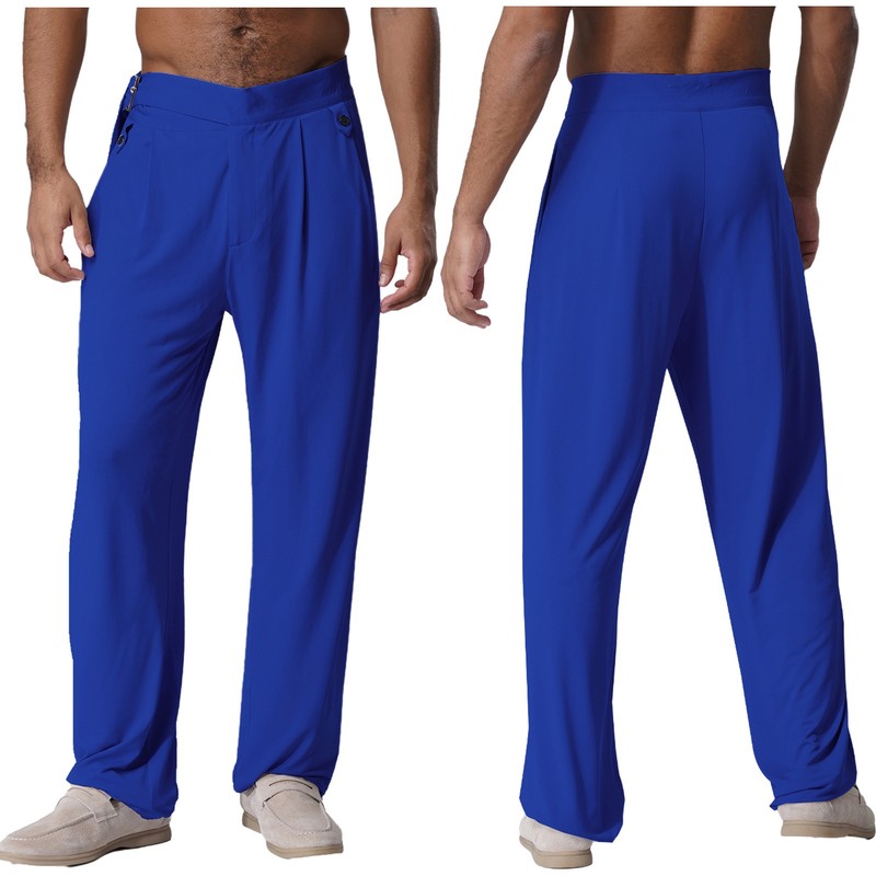 Men Pants Competition Dancewear Pockets Trousers Buckle Ballroom Casual Modern