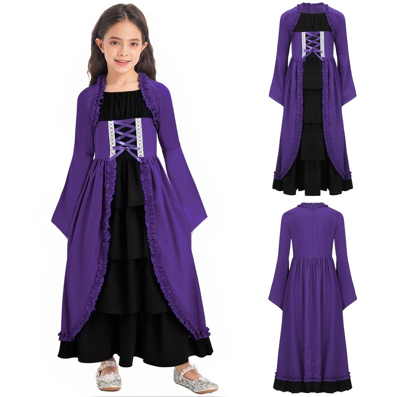 Long bell sleeves add a touch of elegance and medieval charm, giving the dress a unique and stylish look.
