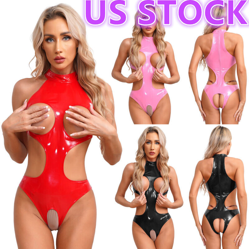 Womens See-through Mesh Crotchless Bodysuit Hollow Out Halter Backless Leotard Lingerie Nightwear.