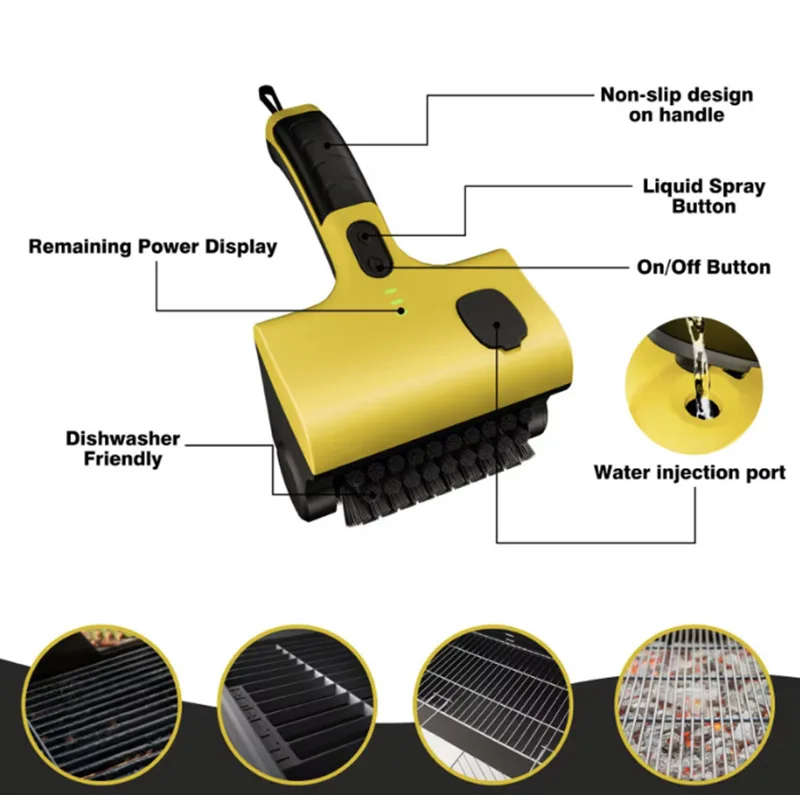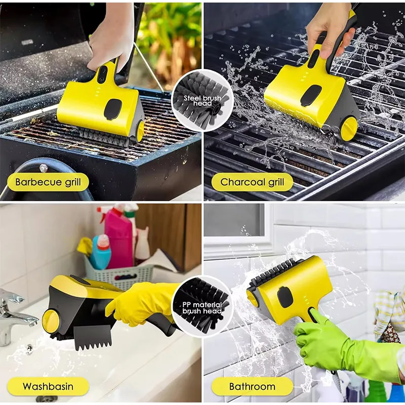 Cordless Electric Grill Cleaning Brush 360° No Dead Angle IPX7 Water Resistant Class 6 Dustproof Our electric grill brush is 5 times faster brush than ordinary grill cleaner with 360 high speed rotating brush head, it is easy to operate and convenient to finish your clean job. You'll find the kitchen we'll carry out the cleaning job too simple Efficient, effective wire brush easily removes any dirt, residue, stains on the grill or food residue from stubborn objects.PP brush head can be used to clean bathrooms