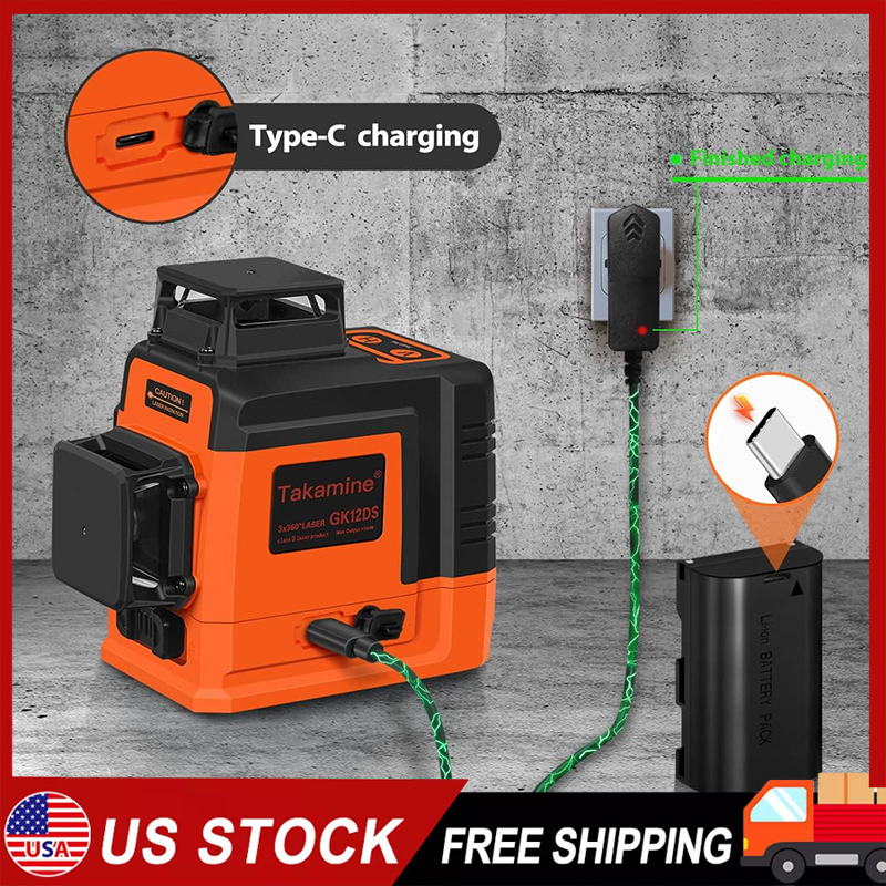 - 3x360° Full Laser Layout: Takamine GK12DS laser for construction has 1 horizontal and 2 vertical lasers,12 laser lines in total covers tiles, ceilings and surrounding walls, helping you to quickly complete a square layout