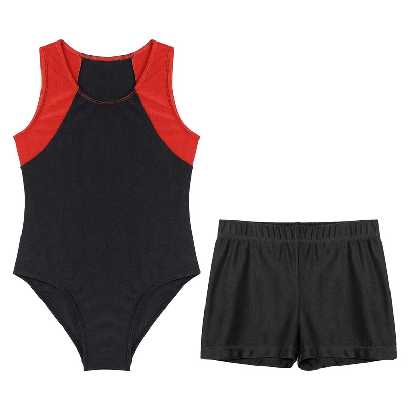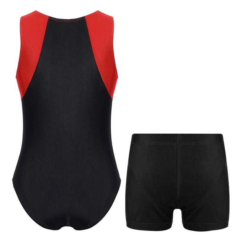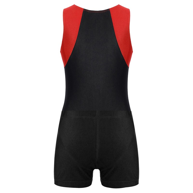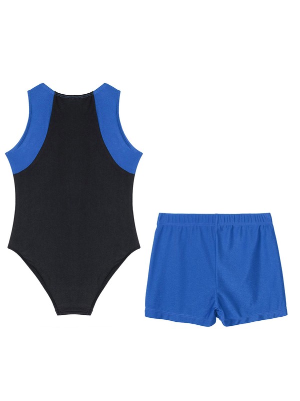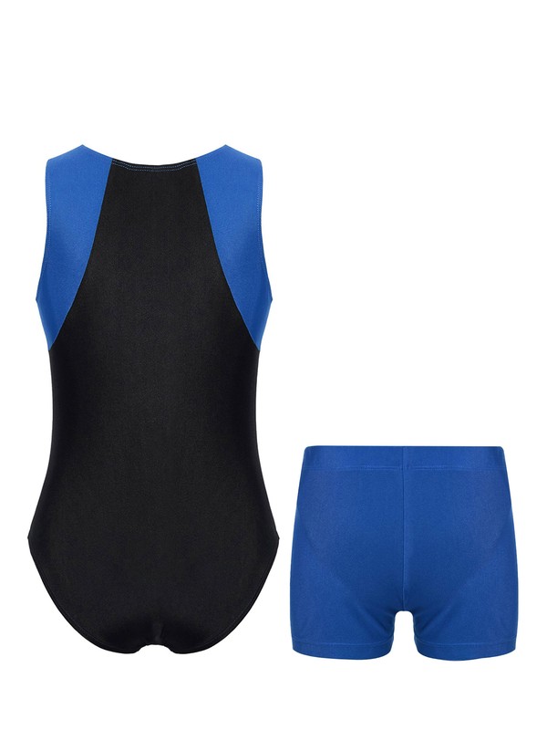 Kids Boys Round Neck Sleeveless Gymnastic Leotard Bodysuit Jumpsuit with Shorts Set.