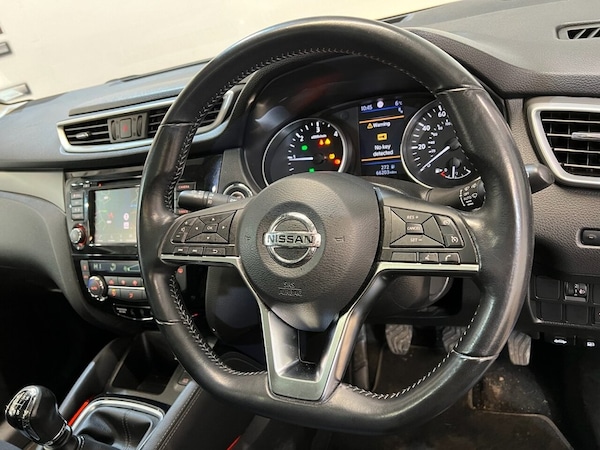 The Nissan Qashqai 1.5 dCi N-Connecta SUV offers a great blend of style, technology, and practicality. Powered by a 1.5-litre diesel engine producing 115 PS, it is Euro 6 compliant, making it both efficient and environmentally friendly. This model comes with two keys and a range of features to enhance comfort and convenience. Supplied with a fantastic service history mostly Nissan Main Dealer with services recorded at 5, 8, 20 and 40 thousand miles. The exterior includes alloy wheels, privacy glass, electric folding door mirrors, automatic lights, and front and rear parking sensors for added ease when manoeuvring. The interior is equally impressive, featuring climate control, a DAB radio, Bluetooth connectivity, and a built-in navigation system. The panoramic sunroof adds a sense of space and light, while the surround view and reverse camera offer extra visibility and confidence when parking. This well-equipped SUV is a perfect choice for those seeking a stylish, reliable, and practical vehicle. All vehicles are delivered serviced, with a full 12 months clean (NO ADVISORIES) MOT. All vehicles also come with free complimentary 12 months breakdown cover. All vehicles are supplied with a FREE 6 months warranty. An upgraded, extended 12 month warranty at reasonable additional cost is also available. P/X welcome. Please check our website for our up to date stock of over 400 cars and vans, an excellent selection is always available..alloy wheels + privacy + keyless , F/R parking sensors + auto lights , folding mirrors + DAB radio + bluetooth, climate control + panoramic sunroof , surround view and reverse camera + NAV , 18in Alloy Wheels, 3 Height Adjustable Rear Headrests, 6 Speakers, 60-40 Split Rear Folding Seats, AM-FM-CD Audio System with DAB, AUX Socket for MP3 Player, Advanced Drive Assist Display - 5in TFT Coloured Screen, Ambient Lighting Centre Console, Auto Wipers, AutoHold Function - Stand Still Assist, Bluetooth with Audio Streaming, Body Coloured Door Mirrors, Body Coloured Handles, Boot Light, Centre Console Storage and Armrest, Chrome Glass Surround, Chrome Interior Door Handles, Cruise Control with Speed Limiter, Daytime Running Lights Dip Function When Turn Signal Applied, Driver Seat Height Adjustment, Driver-Passenger-Side and Curtain Airbags, Drivers Seat with Manual Lumbar Support, Dual Zone Climate Control Air Conditioning, ESP ABS EBD and Brake Assist, Electric Heated Auto-Folding Door Mirrors, Electric Parking Brake, Electric Speed-Sensitive Power Steering, Front 12v Power Sockets x2, Front Fog Lights, Front and Rear Door Pockets with Drink Holders, Front and Rear Electric Windows, Front and Rear Seat Belts with Load Limiter and Pretensioners, Front and Rear Seatbelt Warning, Glossy Black Dash Trim, Halogen Headlamps, Height Adjustable Front Head Restraints, Height Adjustable Front Seatbelts, Hill Start Assist, ISOFIX Child Seat Anchoring Points - Rear x2, Intelligent Around View Monitor, Intelligent Auto Headlight, Intelligent Park Assist, Interior Ambient Lighting, LED Daytime Running Lights, Leather D Shaped Steering Wheel, Leather Gear Lever, Leather Knee Pad, Luggage Board System, Matt Silver Roof Rails, Nissan Anti Theft System Immobiliser, Nissan Chassis Controls, Nissan Connect 7in Touchscreen Navigation and Entertainment System, Nissan Intelligent Key, One Touch 4 x Auto Windows with Illuminated Switches, Outside Temperature Sensor, Parcel Shelf - Stow Function Under Luggage Board, Passenger Airbag Deactivation System, Passengers Seat with Manual Lumbar Support, Pollen Filter, Puncture Repair Kit, Rear Door Child Locks, Rear Roof Spoiler, Rear USB Port, Rear View Camera, Rear Wiper with Reverse Link, Remote Audio Control, Remote Central Locking with Superlocking, Safety Shield Plus, Seats - Passengers Height Adjustment, Selectable Steering - Normal or Sport, Smart Vision Pack, Smartphone App Integration, Start Push Button, Steering Wheel Mounted Audio