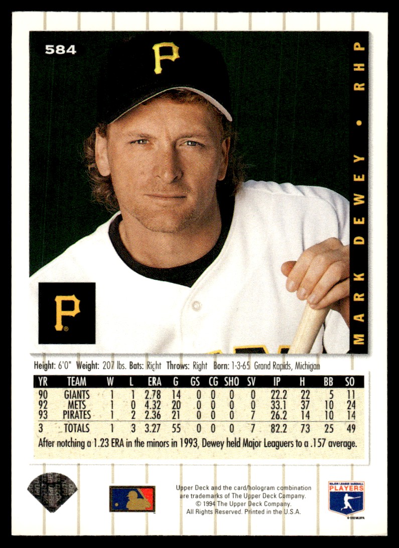 | 1994 Collector's Choice Mark Dewey Pittsburgh Pirates #584 |