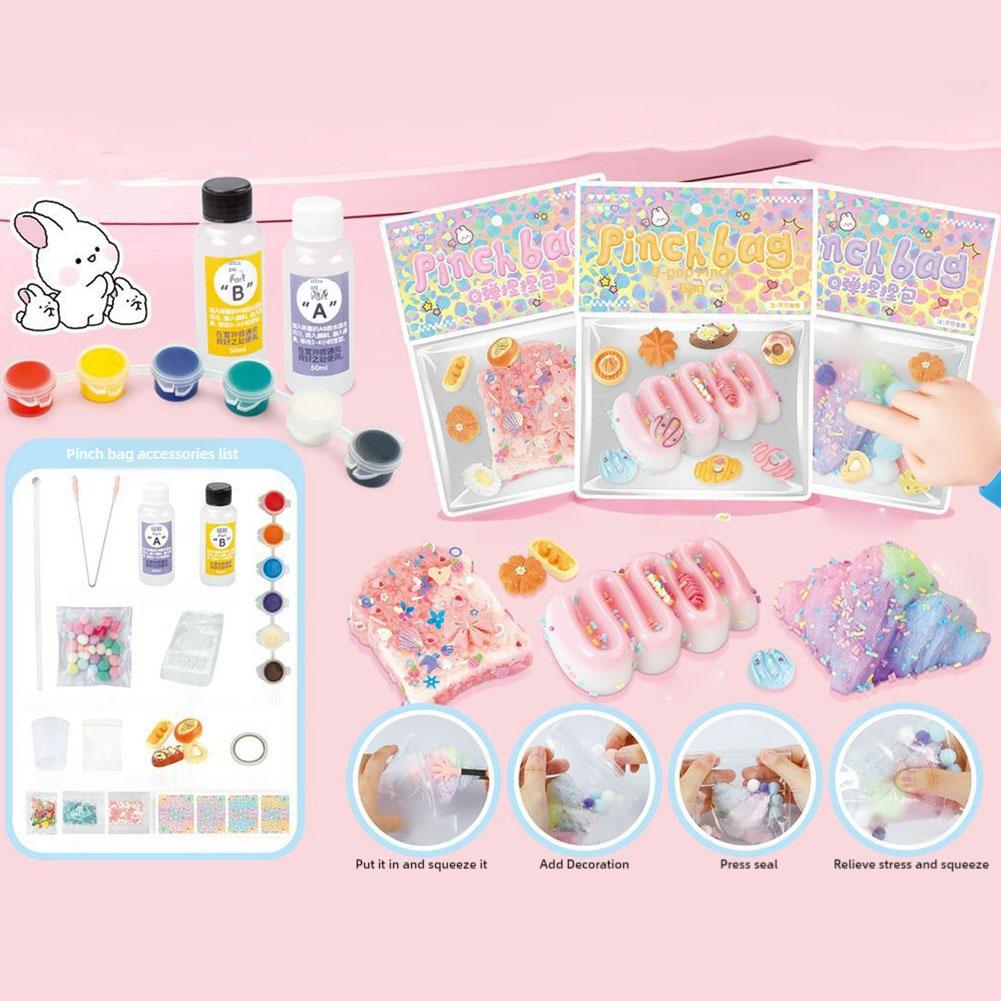 AB glue + pigments + molds + stirring stick + clips + transparent self-sealing bags + PVC accessories + glitter + lint balls + double-sided tape + 4 self-sealing bag hooks