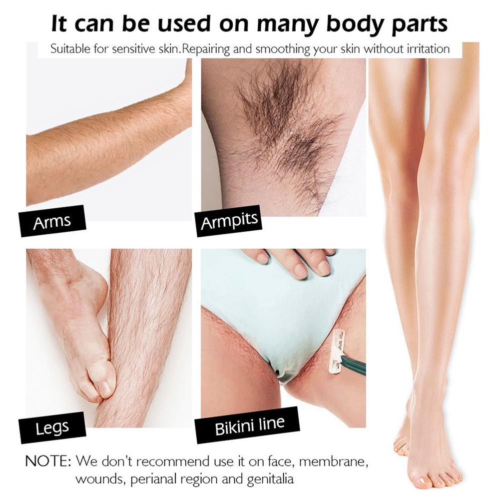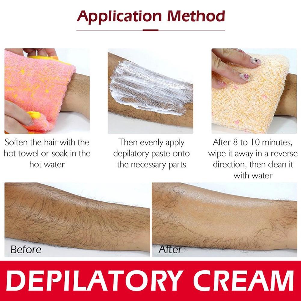 3. Leave for 4-6 minutes, it is recommended not to exceed 10 minutes. Gently wipe off the hair removal cream with a towel in the opposite direction to the hair extension.