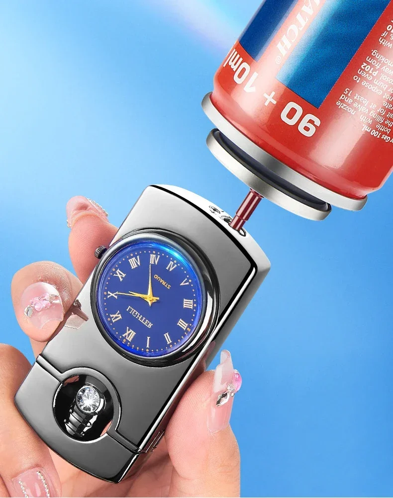 Cigar Lighter Transparent Butane Gas Inflatable Windproof Jet Flame Torch Gadget
