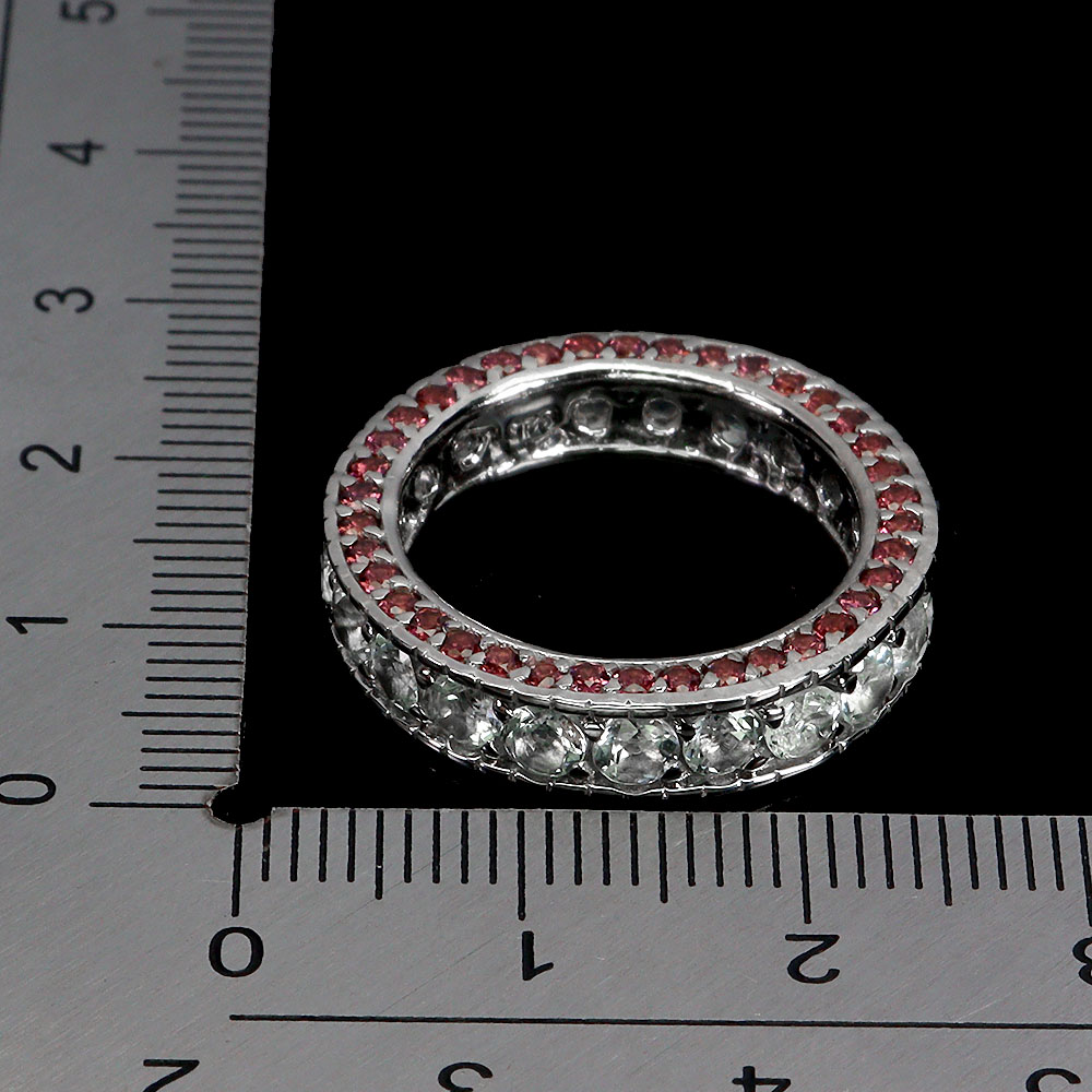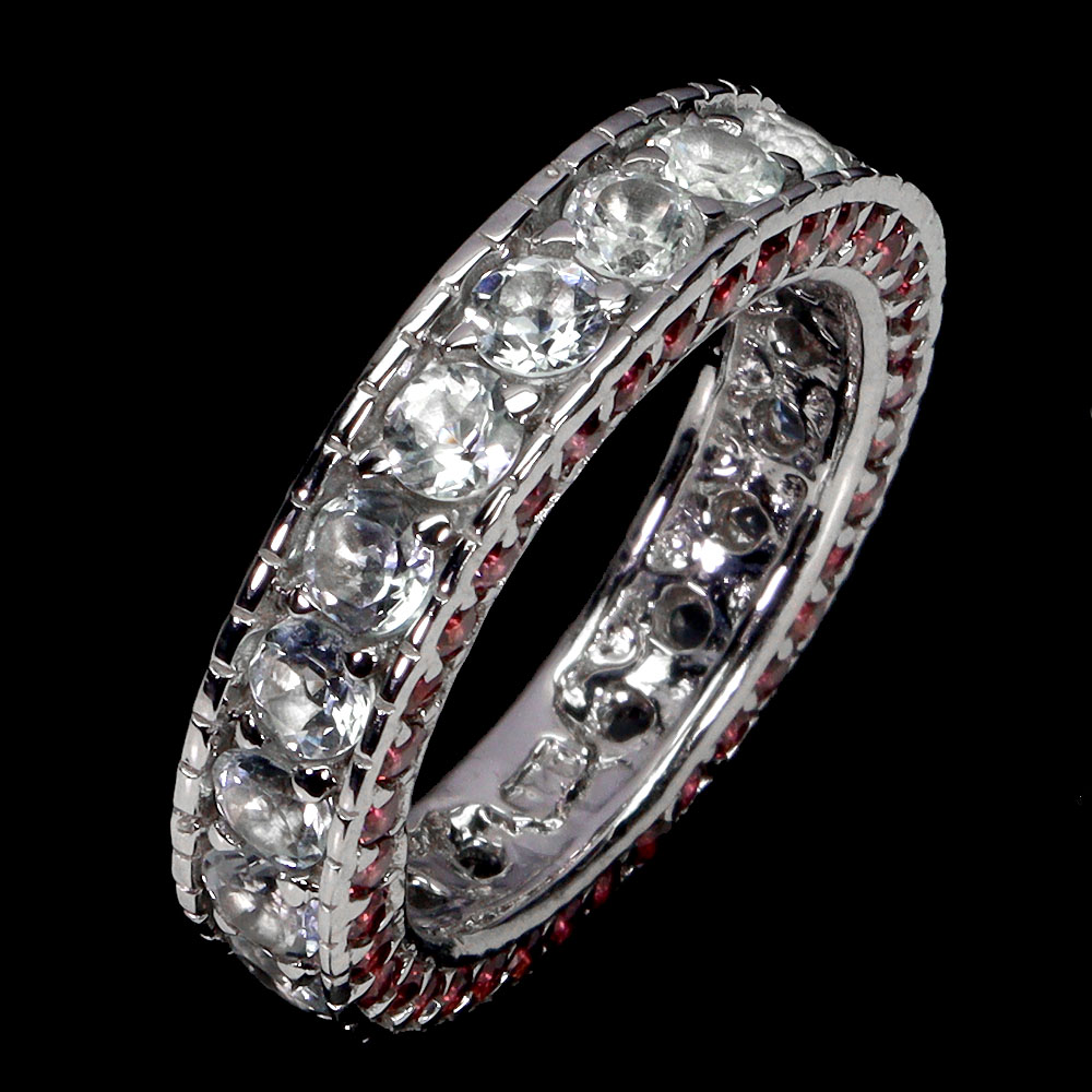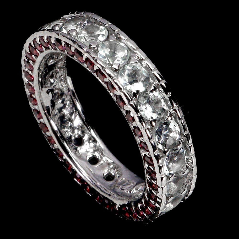 925 Sterling Silver Ring Round Aquamarine Rhodolite Natural Gemstone Size 6.5