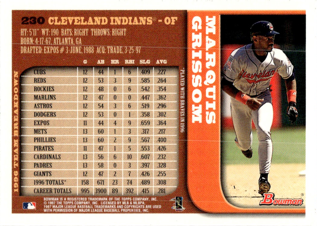 | 1997 Bowman Marquis Grissom Cleveland Indians #230 |