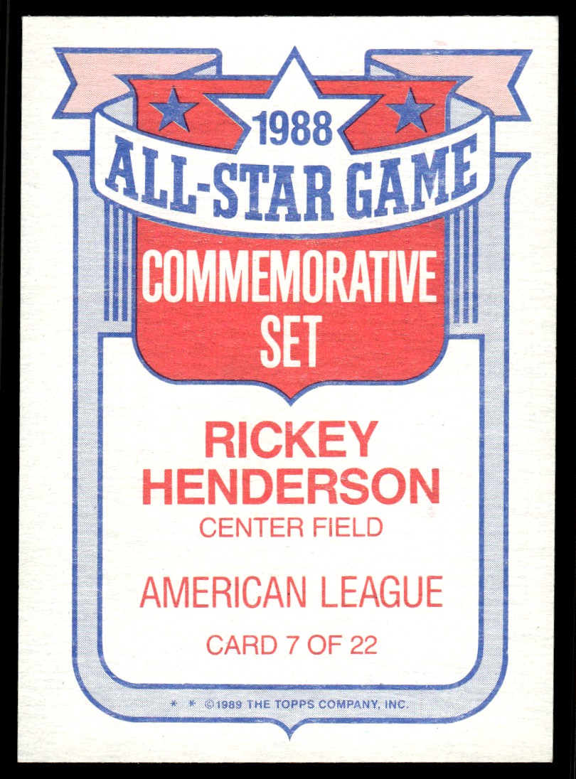 | 1989 Topps Glossy All-Stars Rickey Henderson New York Yankees #7 |