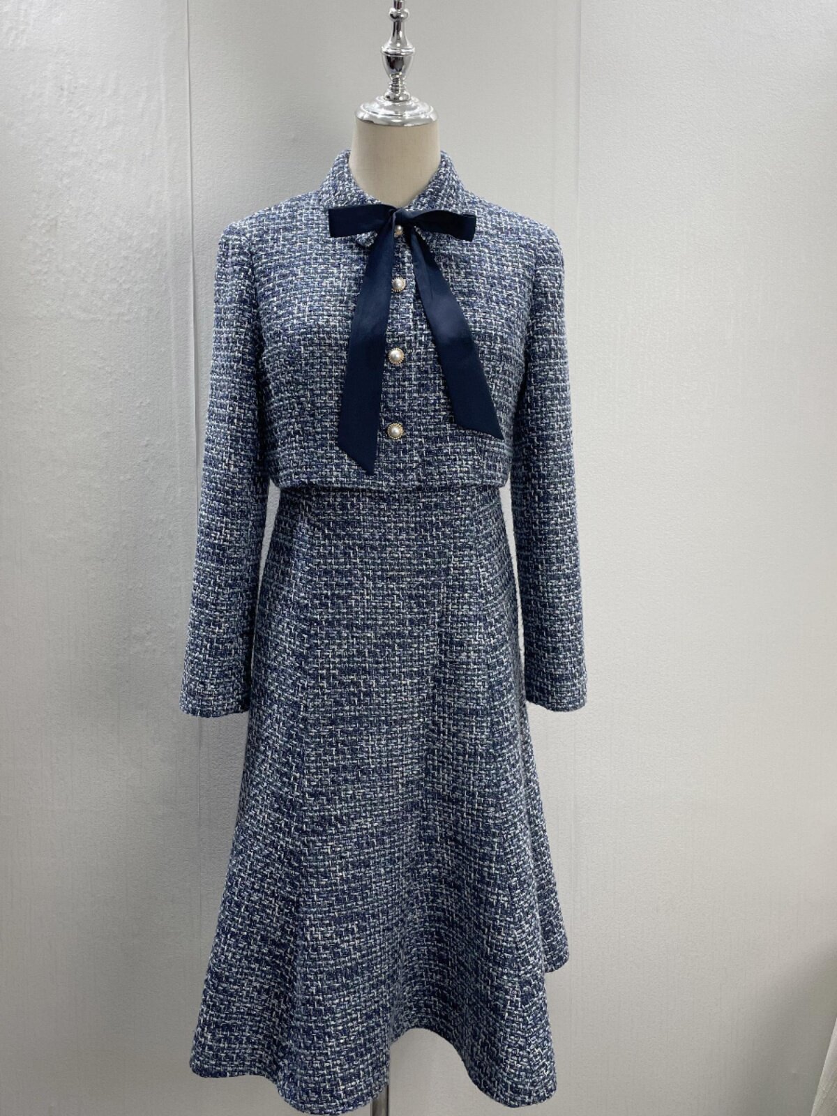 Womens Lapel Collar Long Sleeves Coat+square Neck Slim Fit Coarse Floral Dress