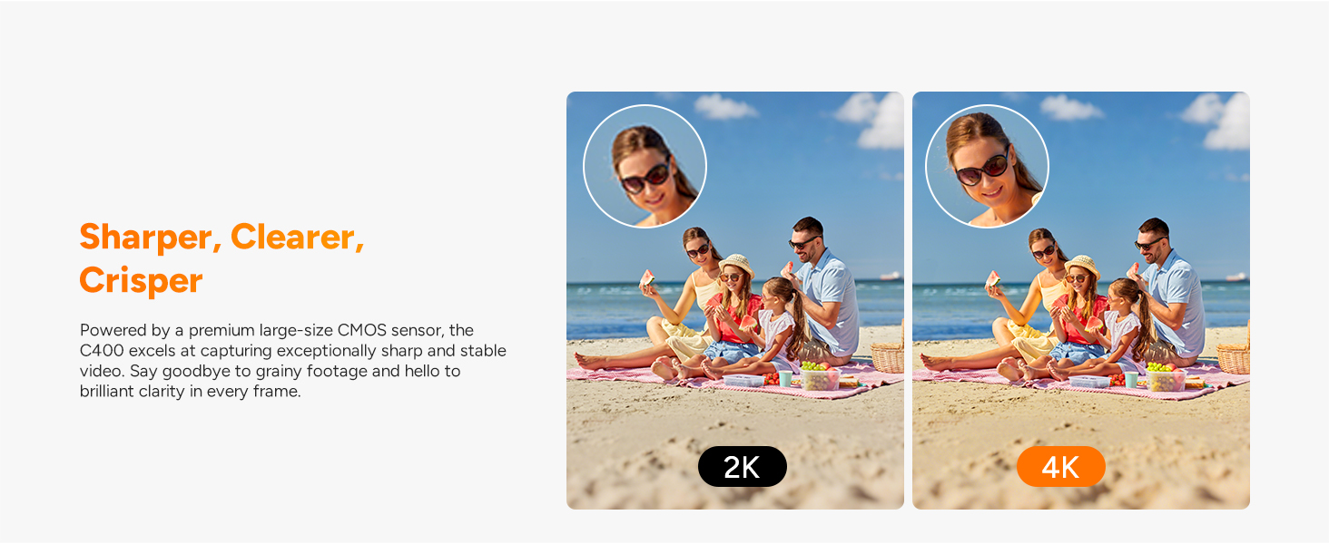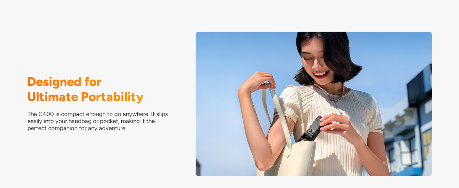 Cinematic Picture Quality: Delivers incredibly realistic 4K Ultra HD resolution. Every detail is exquisitely rendered. A 154° distortion-free wide-angle lens provides an immersive, expansive view, allowing you to easily capture magnificent landscapes. The f/2.0 large aperture significantly improves low-light performance, creating a captivating shallow depth of field effect. The C400 is not just a First-Person View (POV) camera but also becomes your capable handheld companion for daily vlog creation