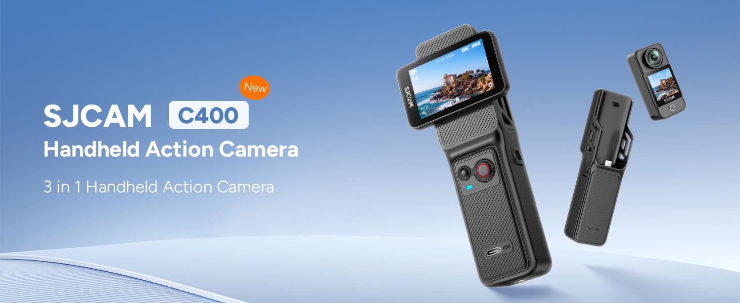 SJCAM C400 Standard Combo, 4K Pocket handheld Camera, 7H Power, 6-Axis Stabilization Action Camera, 2.29''Touch Screen, Waterproof Body Cam for Travel Vlogging and YouTube Live Streaming, Black, Gifts