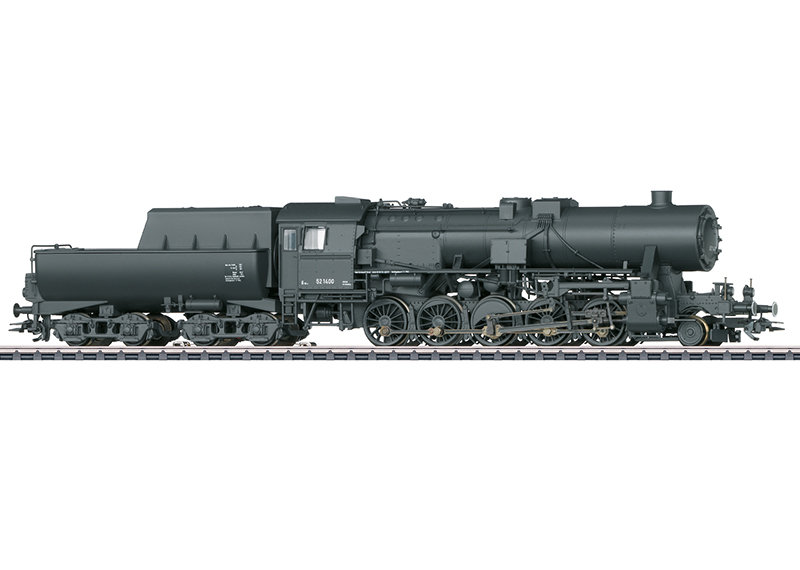 This is a Marklin 39532 HO Scale German State Railroad (DR) Class 52 Steam Locomotive. Prototype: German State Railroad (DR) class 52 heavy freight locomotive with a type 2?2?T30 tub-style tender. Dark gray basic paint scheme. Without smoke deflectors. Frost protection cladding for the air compressor and clad lubrication lines. The pilot truck wheelset includes solid wheels. Locomotive road number 52 1400. The locomotive looks as it did around 1943/44. The locomotive has an mfx+ digital decoder and extensive sound functions. It also has controlled high-efficiency propulsion with a flywheel, in the boiler. 5 axles powered. Traction tires. The locomotive and the tub-style tender are constructed mostly of metal. A 7226 smoke unit can be installed in the locomotive. Dual headlights, which change over with the direction of travel, and the smoke unit, which can be installed, will work in conventional operation and can be controlled digitally. Cab lighting can also be controlled digitally. Maintenance-free warm white LEDs are used for the lighting. There is a close coupling with a guide mechanism between the locomotive and tender. There is a close coupler with a guide mechanism in an NEM pocket on the rear of the tender and the front of the locomotive. Also, the buffer height on the front adheres to the NEM. The minimum radius for operation is 360 mm / 14-3/16"". Protective piston rod sleeves, brake hoses, and imitation prototype couplers are included. Length over the buffers 26.4 cm / 10-3/8"".