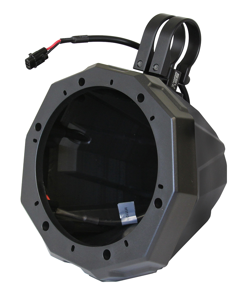 SSV Works Cage Mount Pods are designed for 6.5" speakers when you need more sound in your Side by Side. Unlike wakeboard towers, our mini pods are designed to provide sound to the passengers without blocking visibility. They are finished in a black texture and is stylized to match factory interior textures and can be custom painted to match your color scheme. Brand-new redesigned dual clamping system allows you 360° rotation while on the cage. Unlike other cage pods where you need to find its position before the clamp goes on the bar.